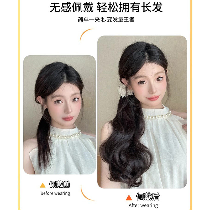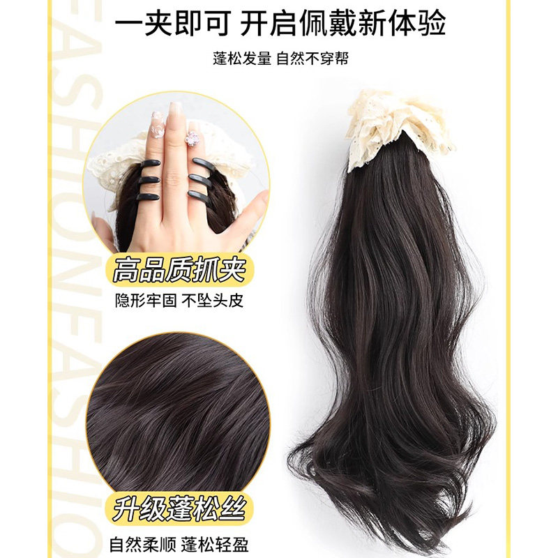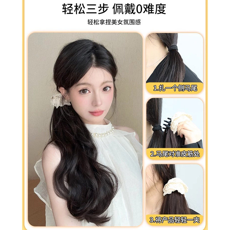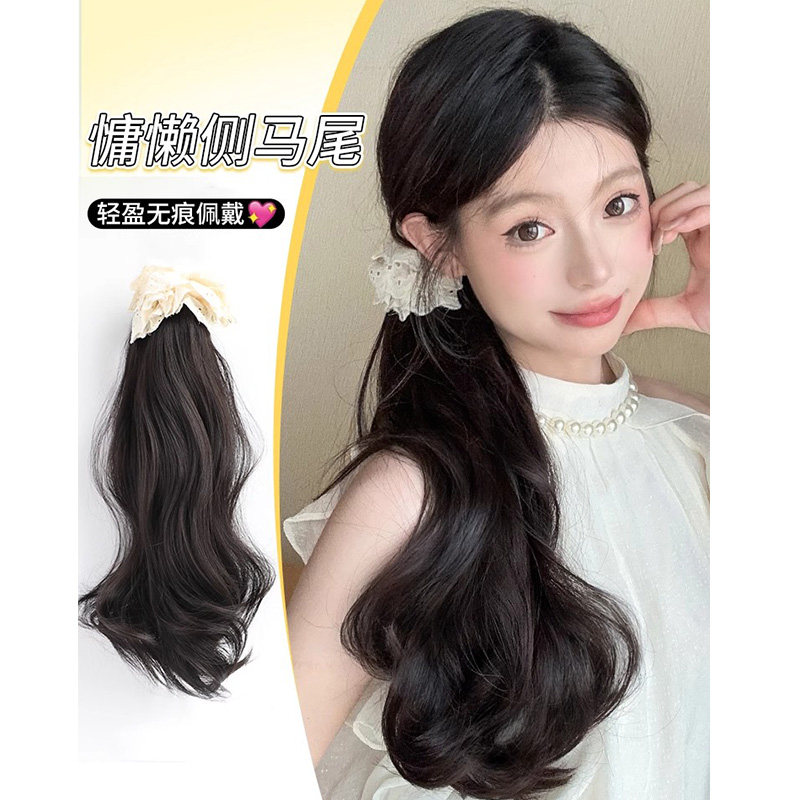 马尾假发女自然蓬松韩系低扎侧马尾蕾丝发圈长卷发抓夹马尾