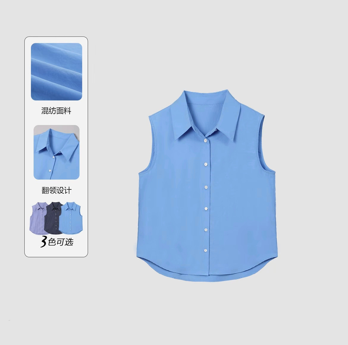【四季叠搭】秋冬新款百搭条纹无袖衬衫叠穿背心翻领衬衣内搭显瘦