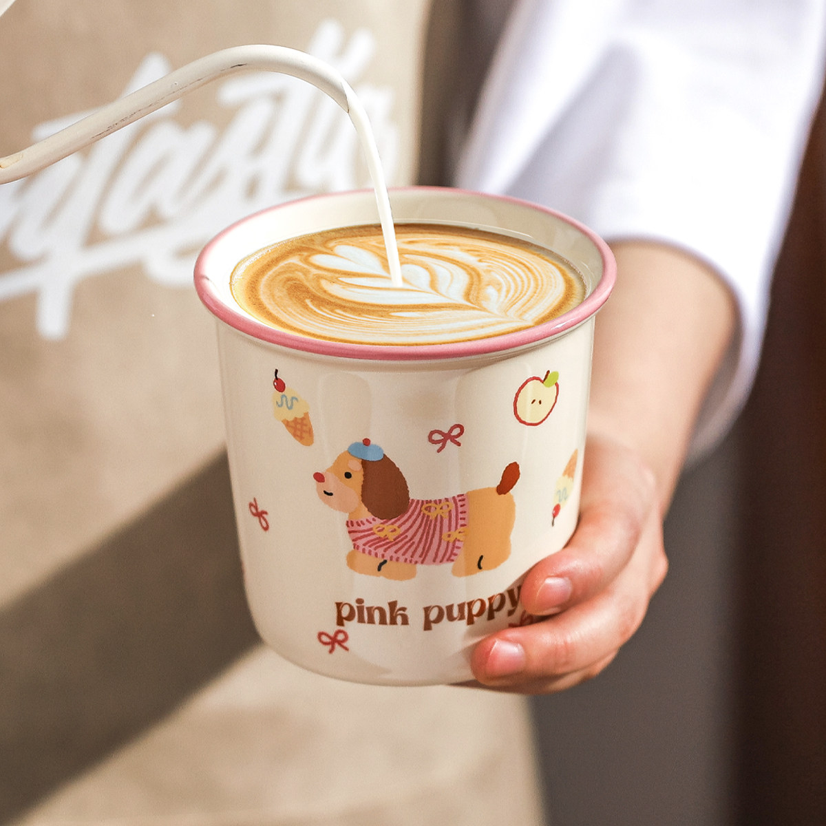 言仓线条小狗马克杯复古陶瓷水杯可爱儿童男女情侣圣诞生日礼物