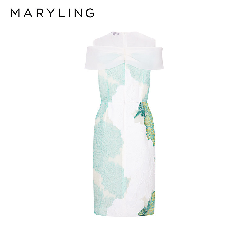 MARYLING玛俪琳新品香草绿高级感提花桑蚕丝礼服裙A1DCW62860