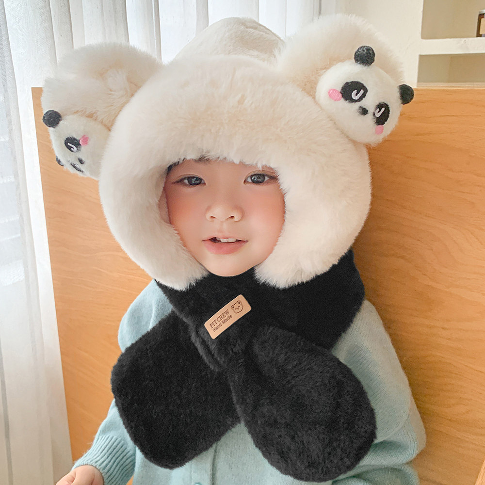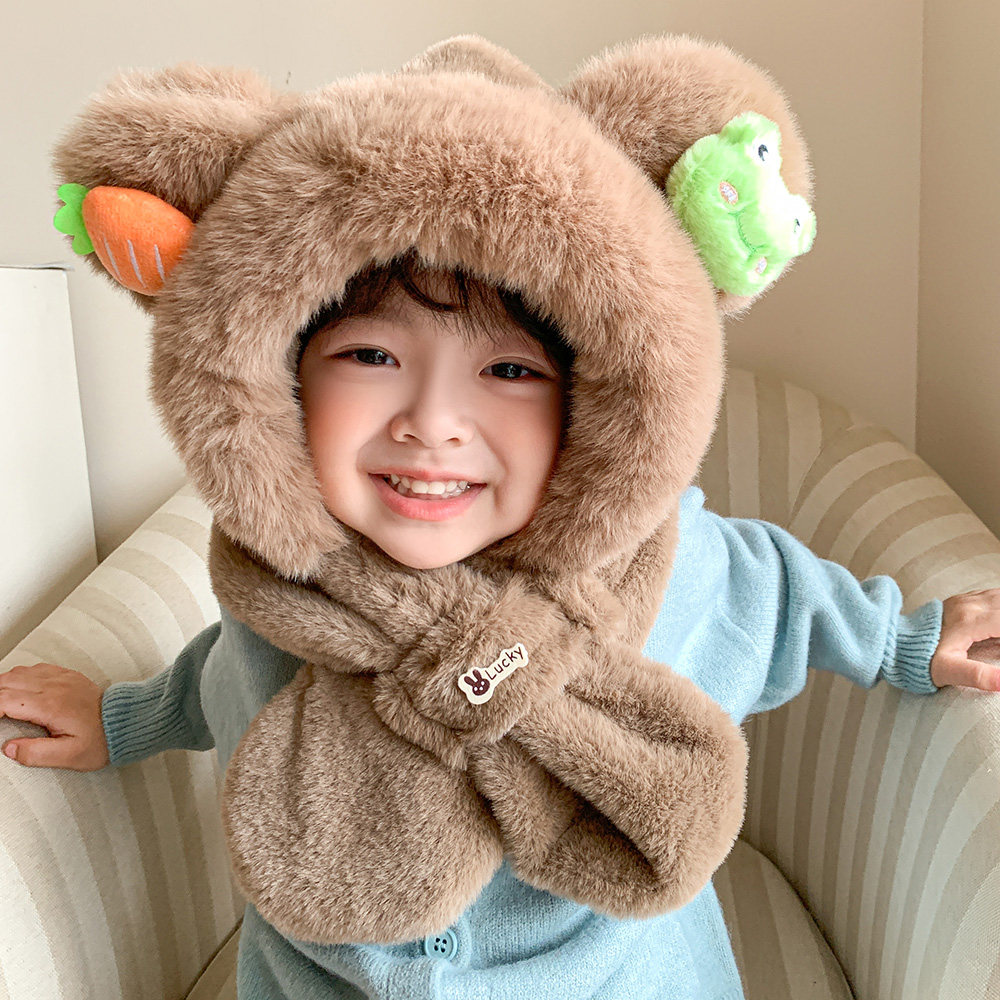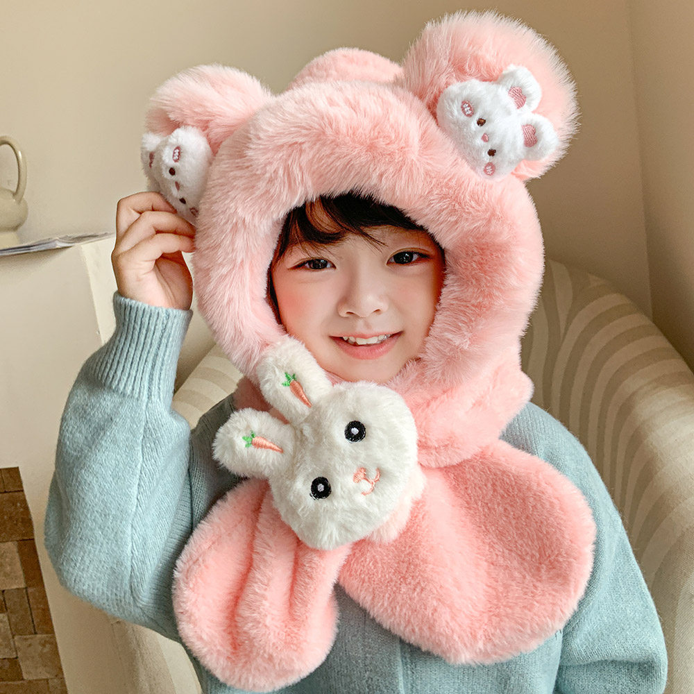 冬季儿童帽子宝宝围巾一体学生骑行可爱护耳帽男女童毛绒围脖套头