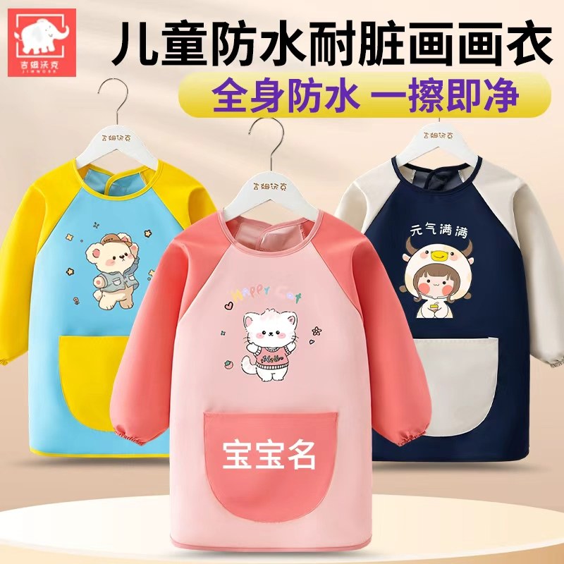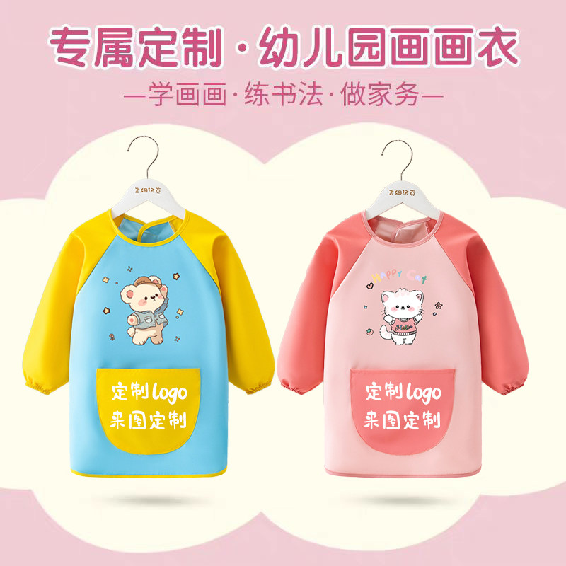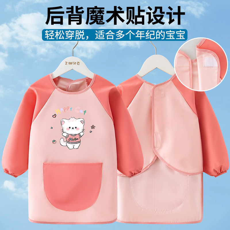 儿童画画罩衣衣服幼儿园防水长袖绘画围裙反穿衣宝宝吃饭围兜防油