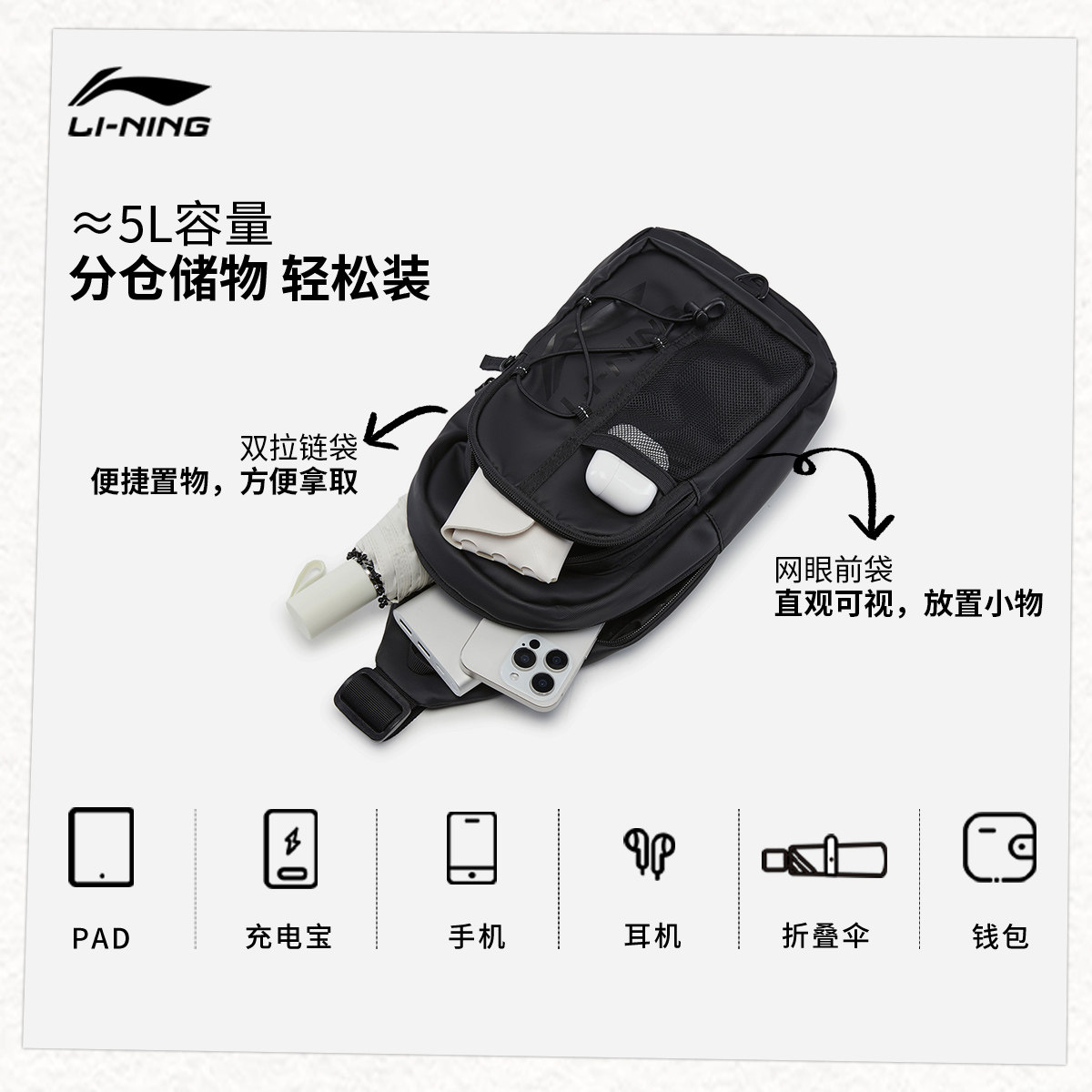 李宁单肩包男包女包2025新款运动生活系列运动包