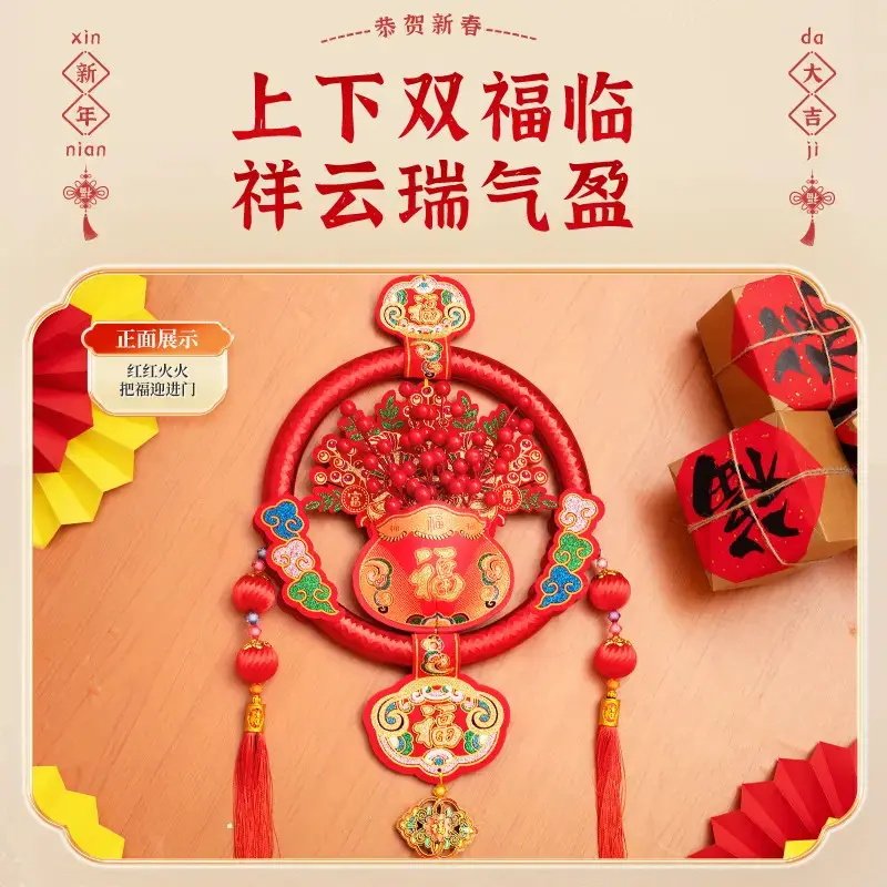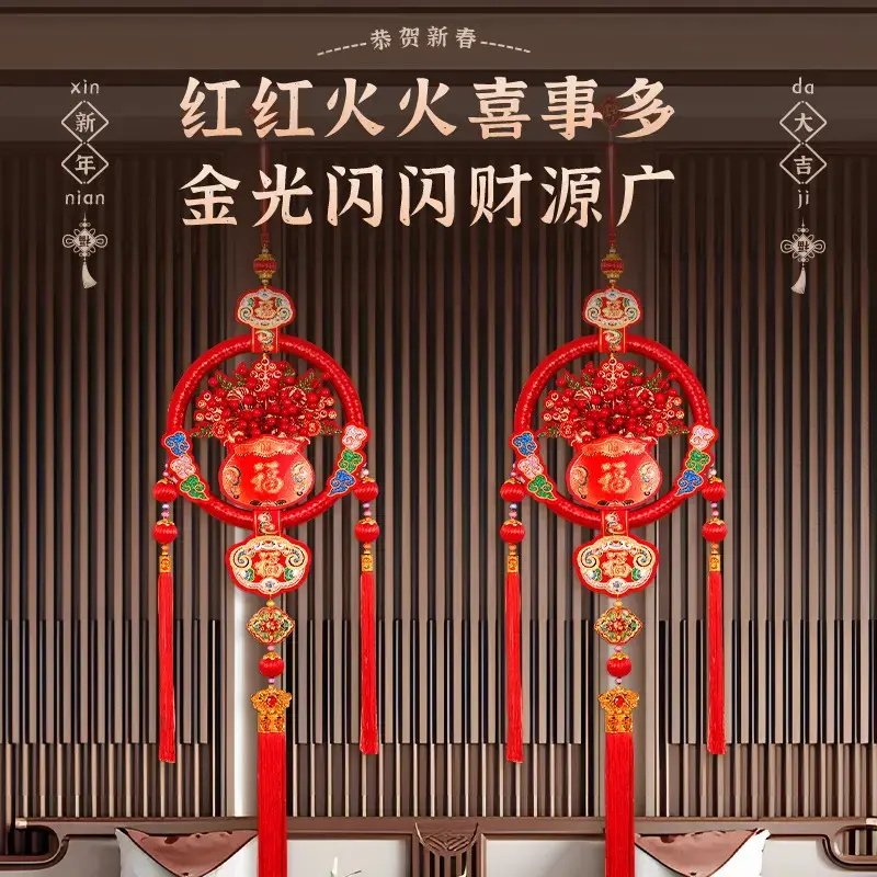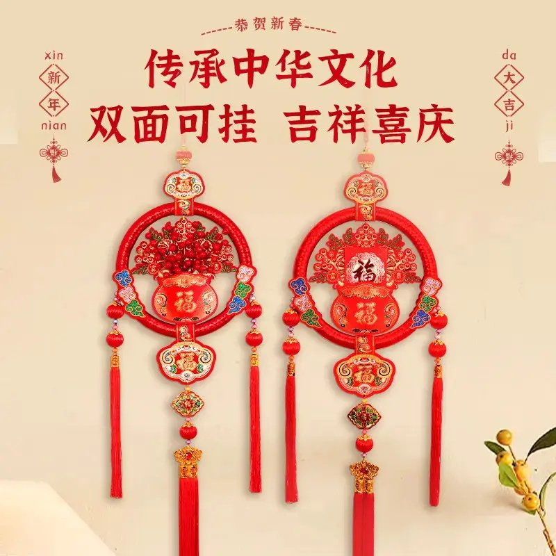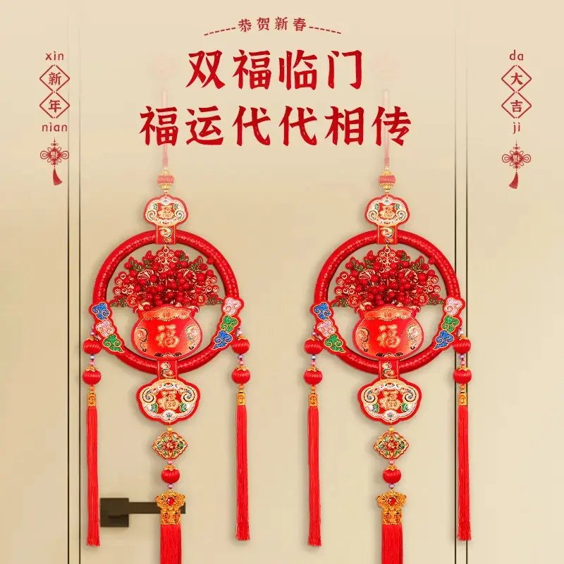 新年过年装饰挂件2026新款双鱼福字挂饰大门客厅氛围布置年货用品
