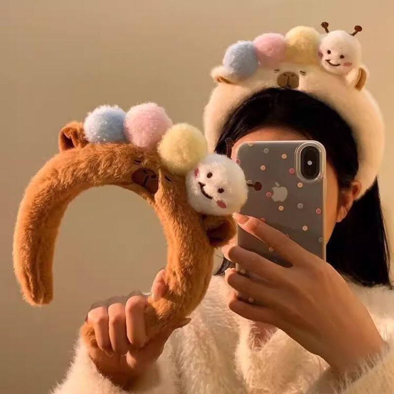 可爱毛毛虫毛绒发箍女款洗脸化妆专用卡通头箍不勒头秋冬发卡发饰