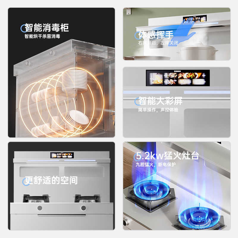 荣事达白色集成灶家用燃气灶油烟机一体机消毒柜蒸烤箱官方旗舰店