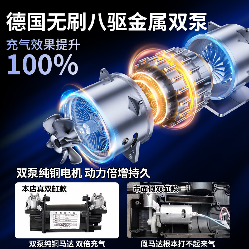 车载充气泵双缸高压便携式电动车用打气筒带测胎压汽车轮胎打气泵