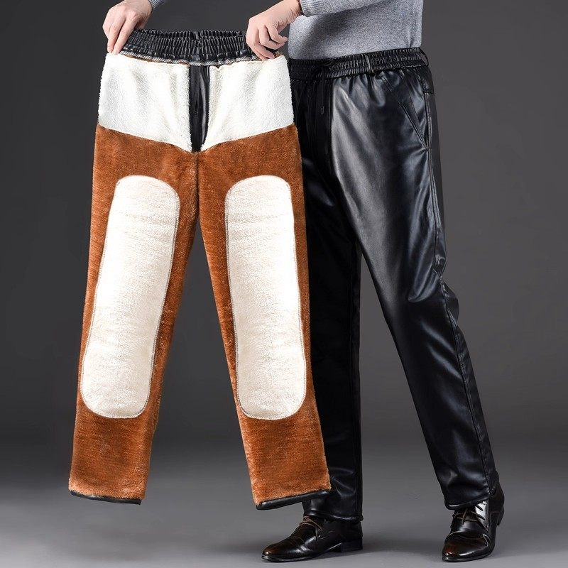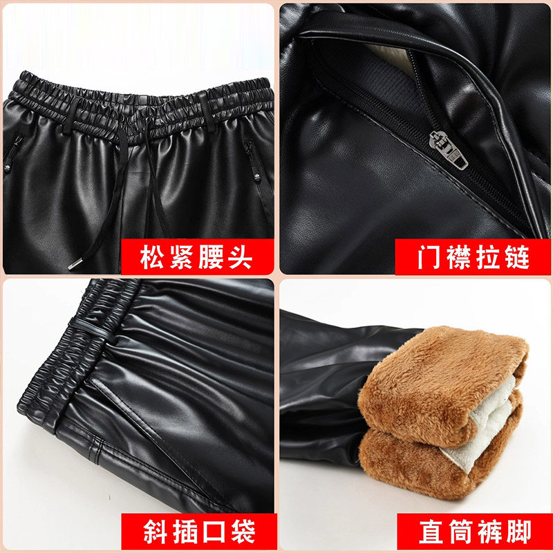 冬季加绒加厚防水骑行皮裤男士宽松外卖防风棉裤男外穿松紧腰加长
