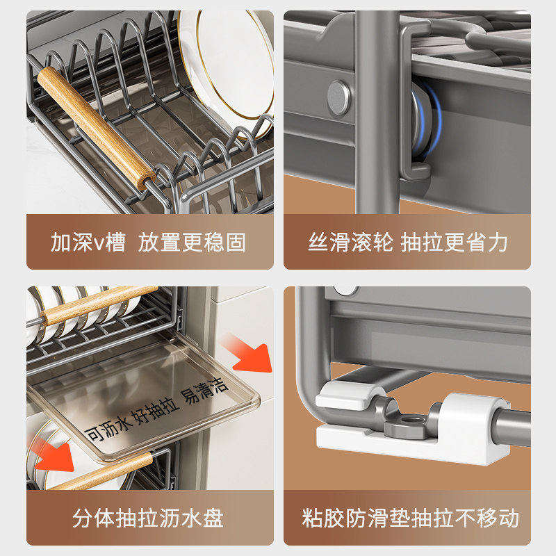 厨房抽拉碗碟架抽拉橱柜内拉篮碗架抽屉式放碗盘子收纳沥水置物架