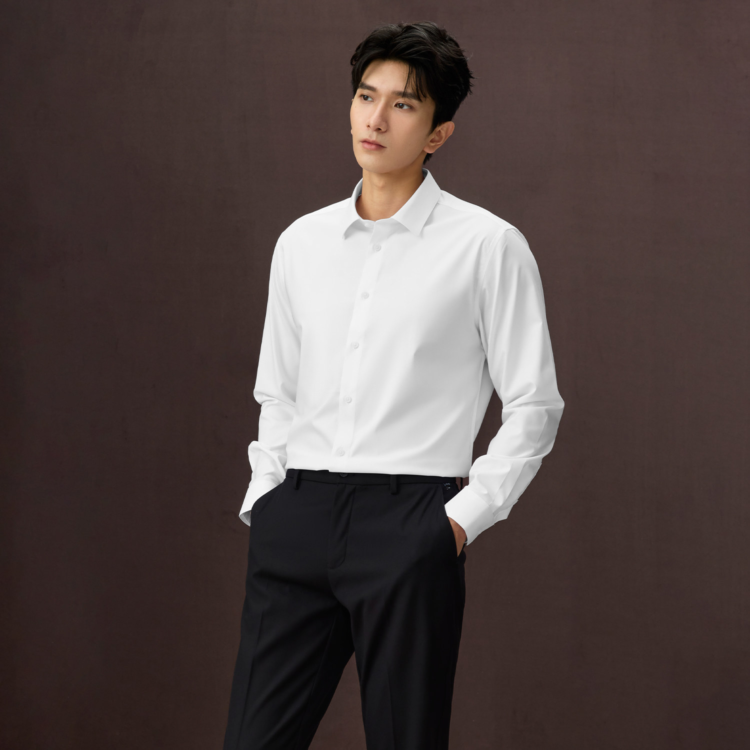 【云感衬衫】金利来春夏新款莫代尔弹力抗皱男士商务长袖白色衬衣
