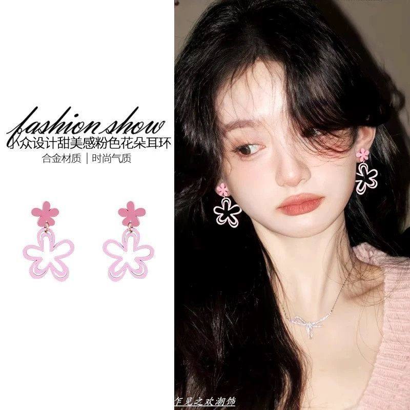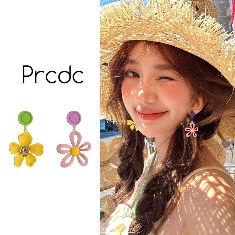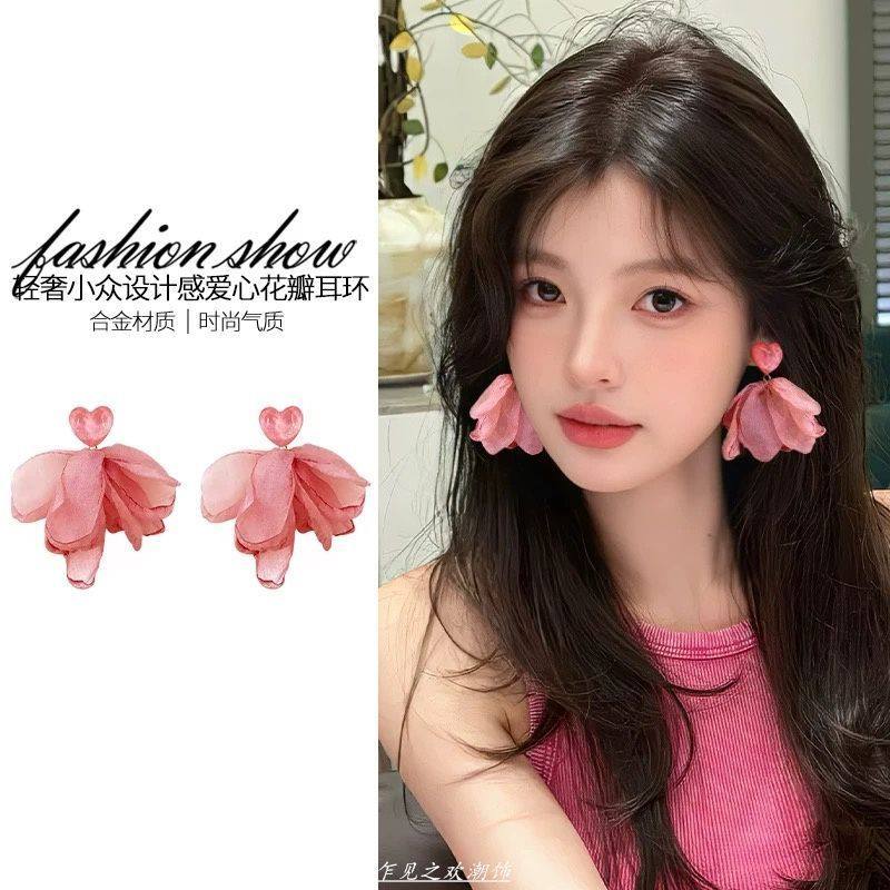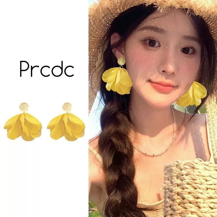元气森系甜美黄色花瓣耳环银针超仙气质雪纺耳钉海边沙滩拍照耳饰