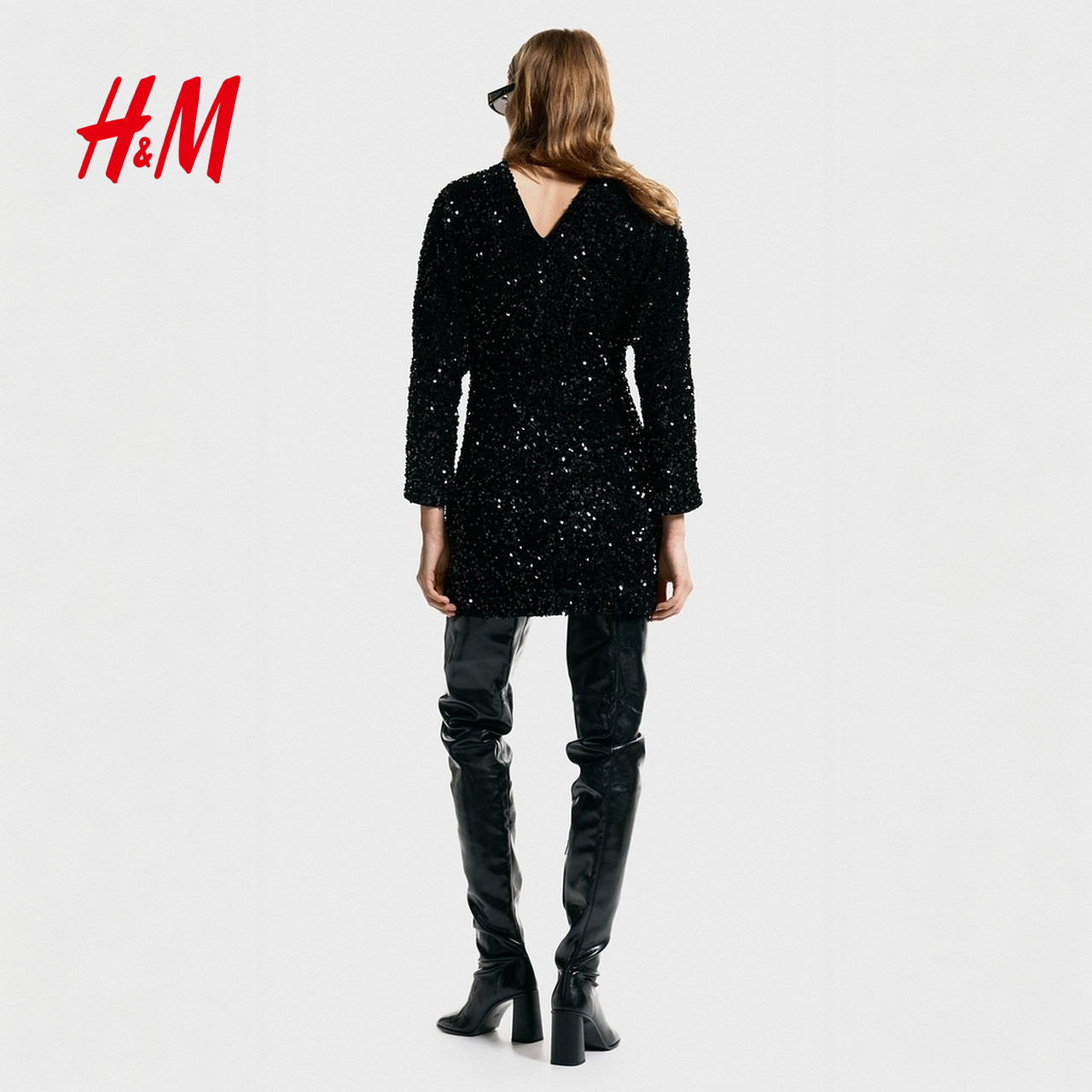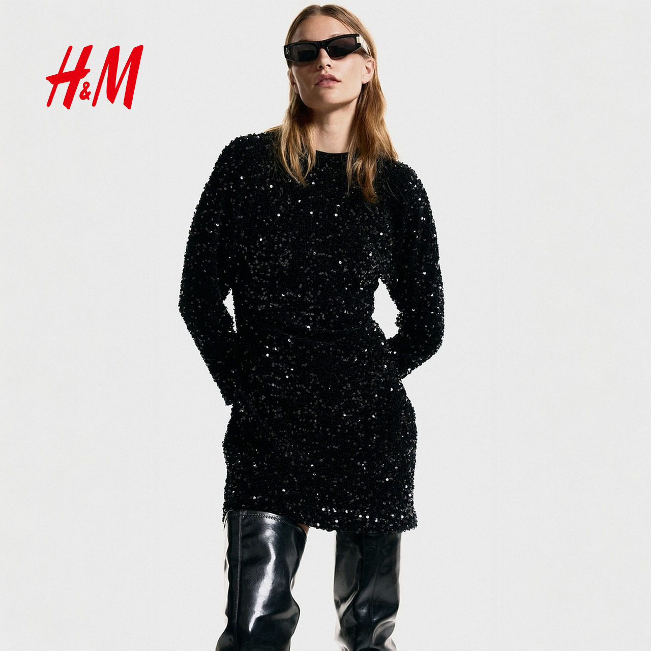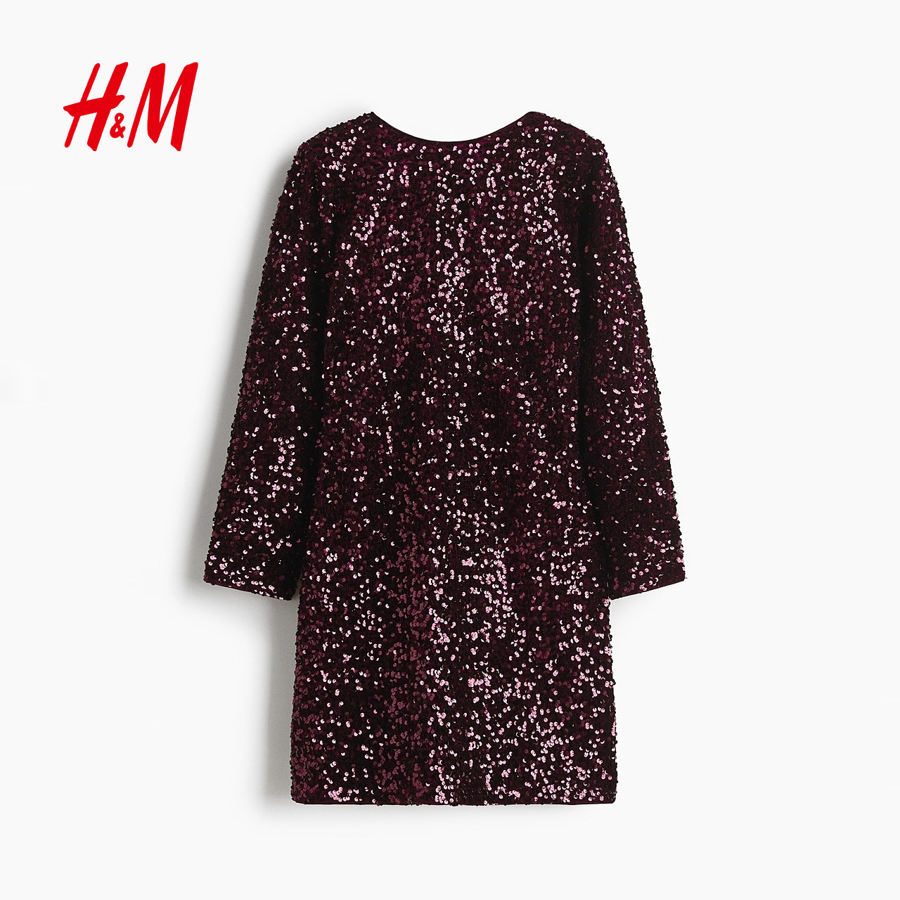HM女装连衣裙春季晚宴亮片优雅迷你party小礼服1304853