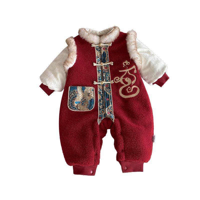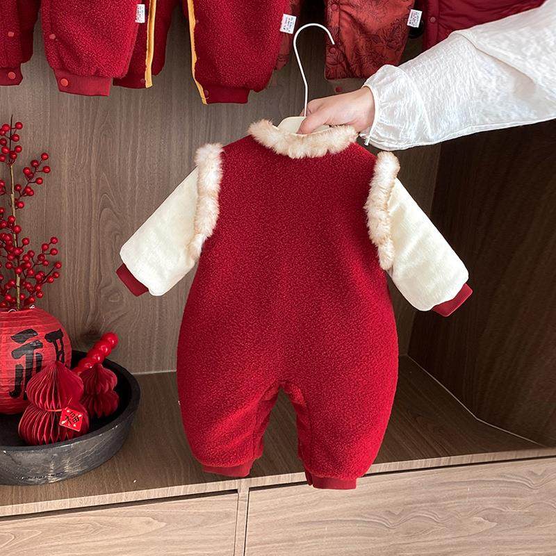 婴儿棉服冬季宝宝连体衣冬装拜年服婴幼儿国风加厚外出服满月百天