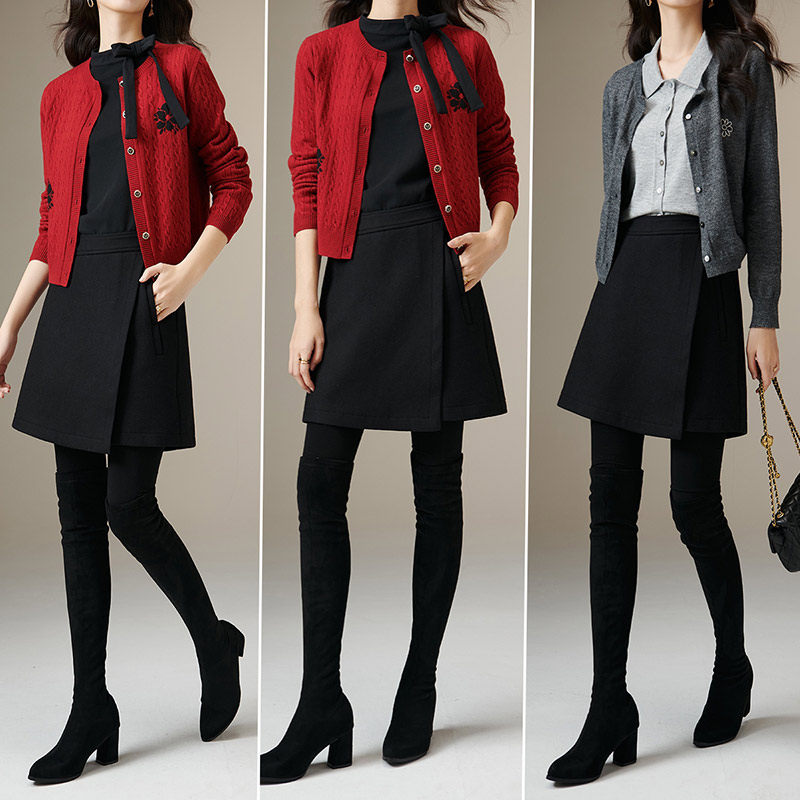 晚白2025年秋冬新款高腰绵羊毛小个子裙裤显瘦短裤配靴子女外穿