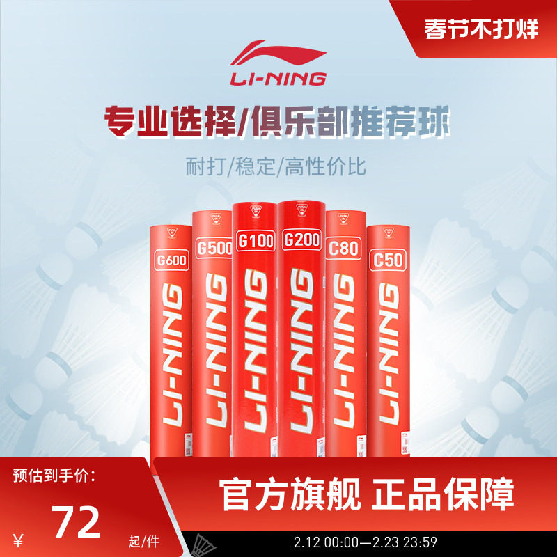 李宁羽毛球 耐打稳定鹅毛球G100/G200/G300室内比赛训练球