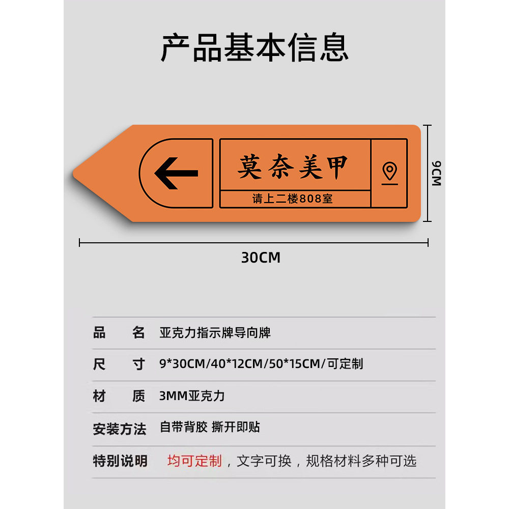 指引牌定制美甲美睫美容店指示牌导向牌箭头标识贴纸店铺引路指示牌路标方向提示牌洗手间指示牌亚克力标识牌