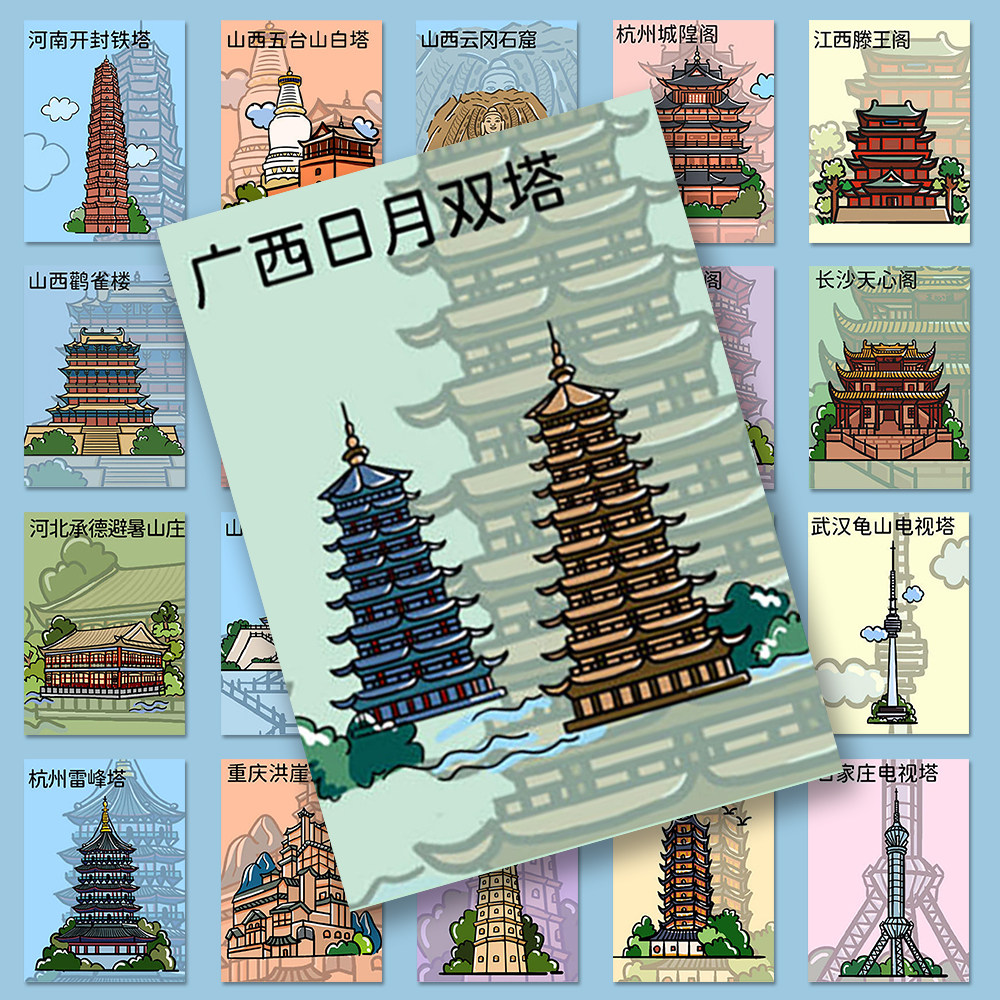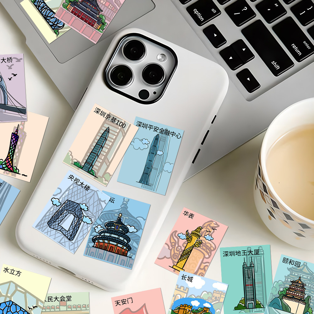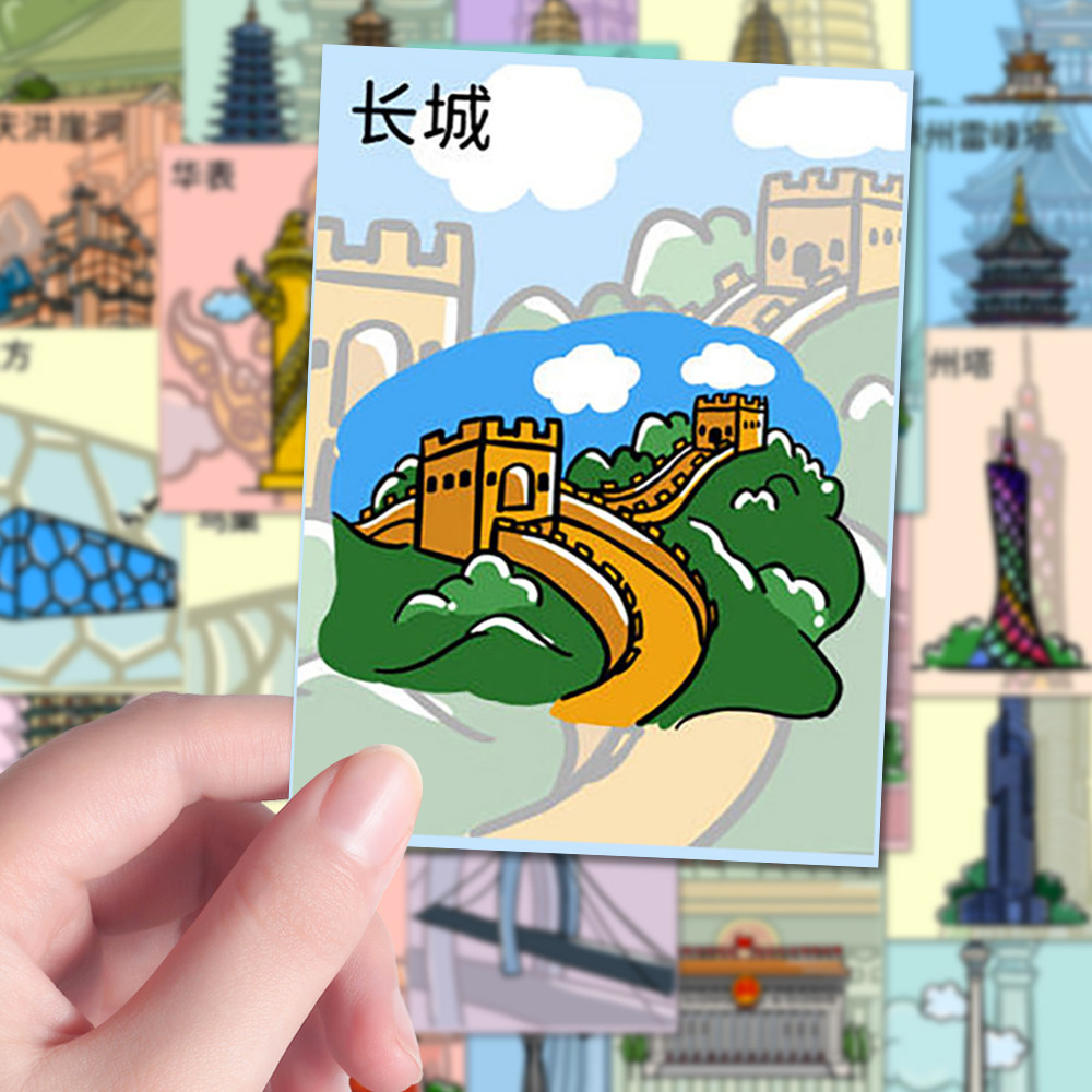 240张地标建筑简笔画贴纸创意趣味儿童简笔画热门旅游景点diy贴画