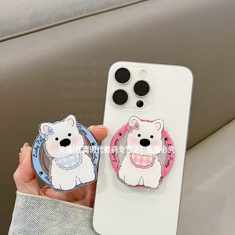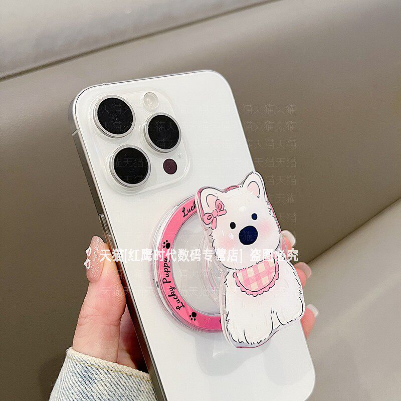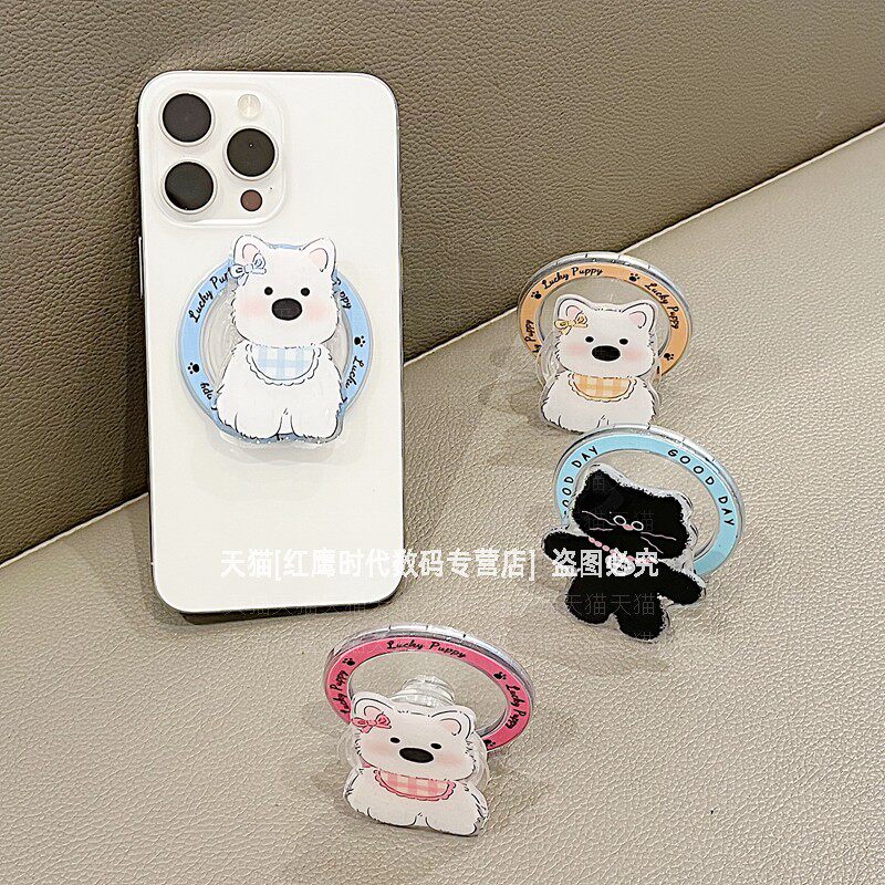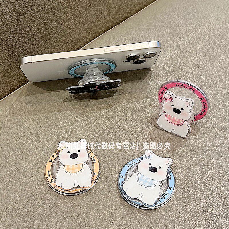 卡通可爱狗狗适用magsafe磁吸气囊手机支架可拆卸折叠桌面支撑垫指环扣背贴少女强力吸附磁铁伸缩吸铁便携女