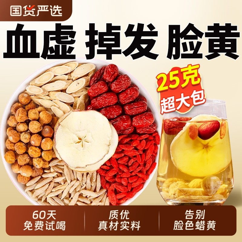 苹果黄芪水茶包麦冬红枣枸杞无花果干女人熬夜养生补气养血养生茶