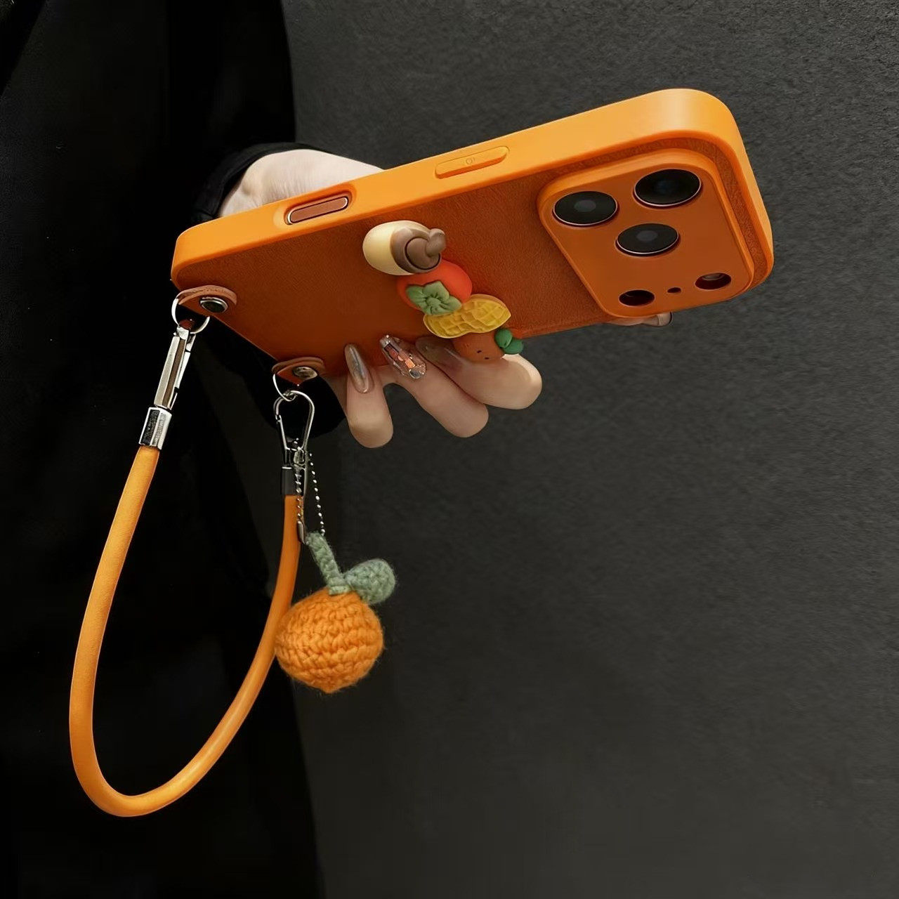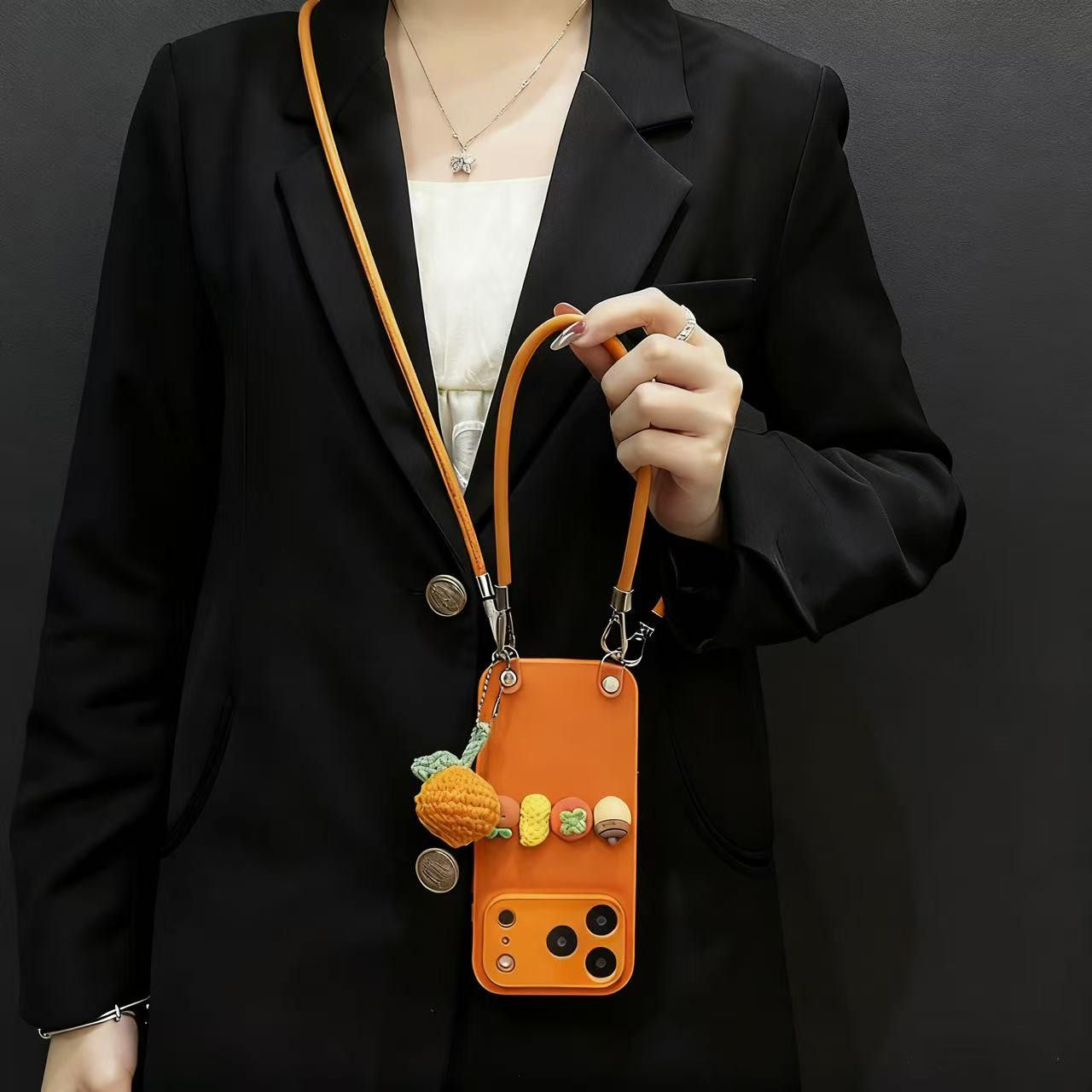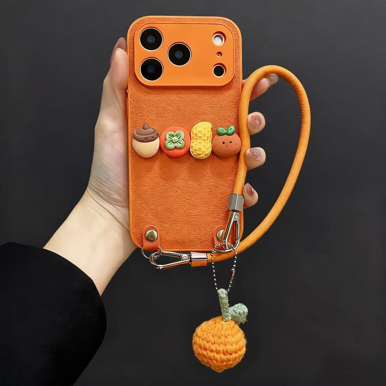 橙色素皮纹好事发生橘子挂件适用苹果17promax手机壳新款iphone16pro高级感14斜跨15plus挂绳13女12小众防摔