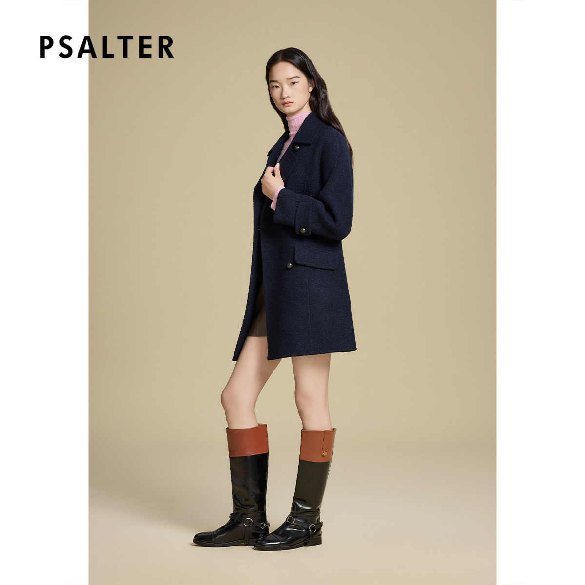 诗篇专选羊毛马海毛混纺翻领双排扣学院呢子大衣外套2025冬款