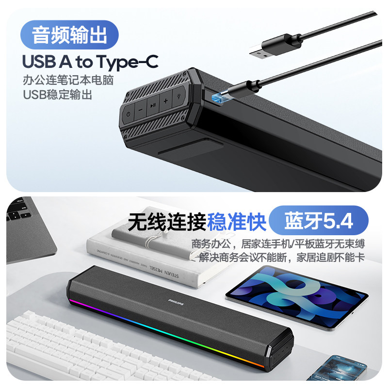飞利浦SPA3200蓝牙音箱电脑音响游戏电竞多媒体音响桌面家用台式