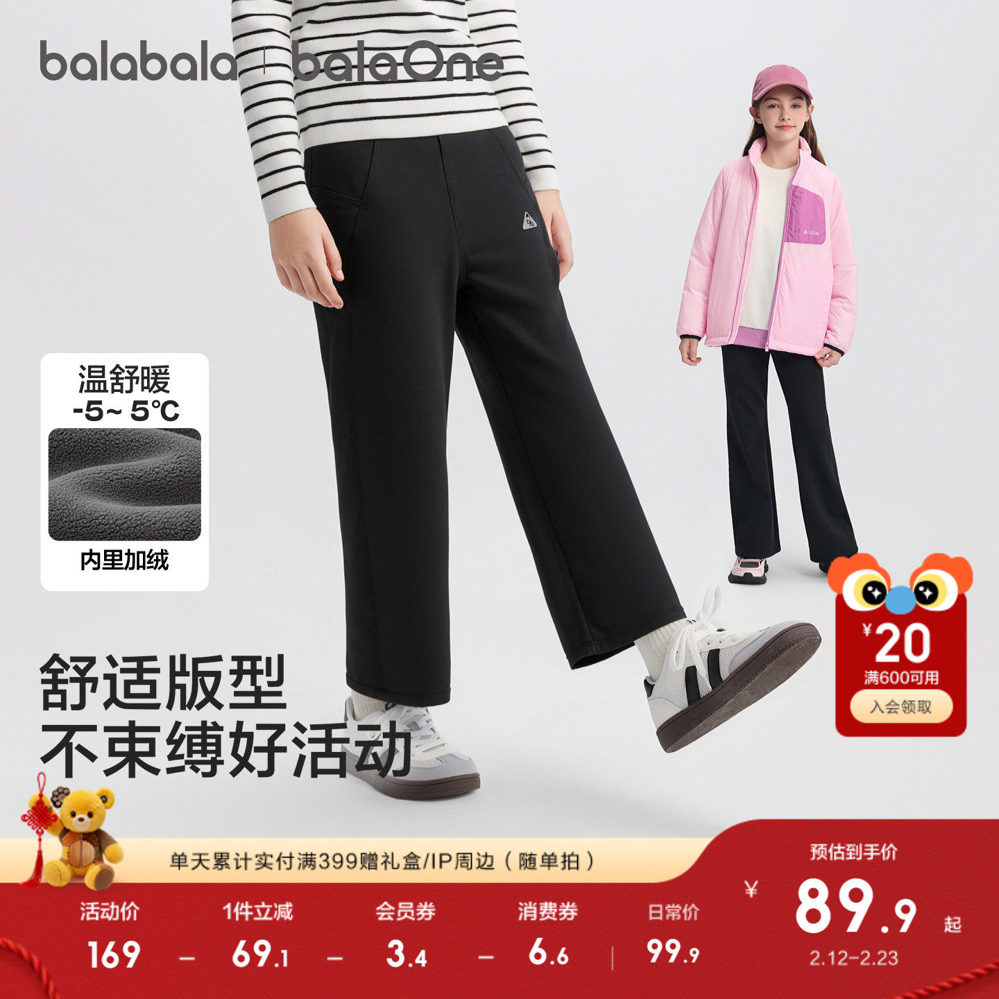 巴拉巴拉童装儿童长裤女童加绒裤子2025秋冬装新款喇叭裤保暖直筒
