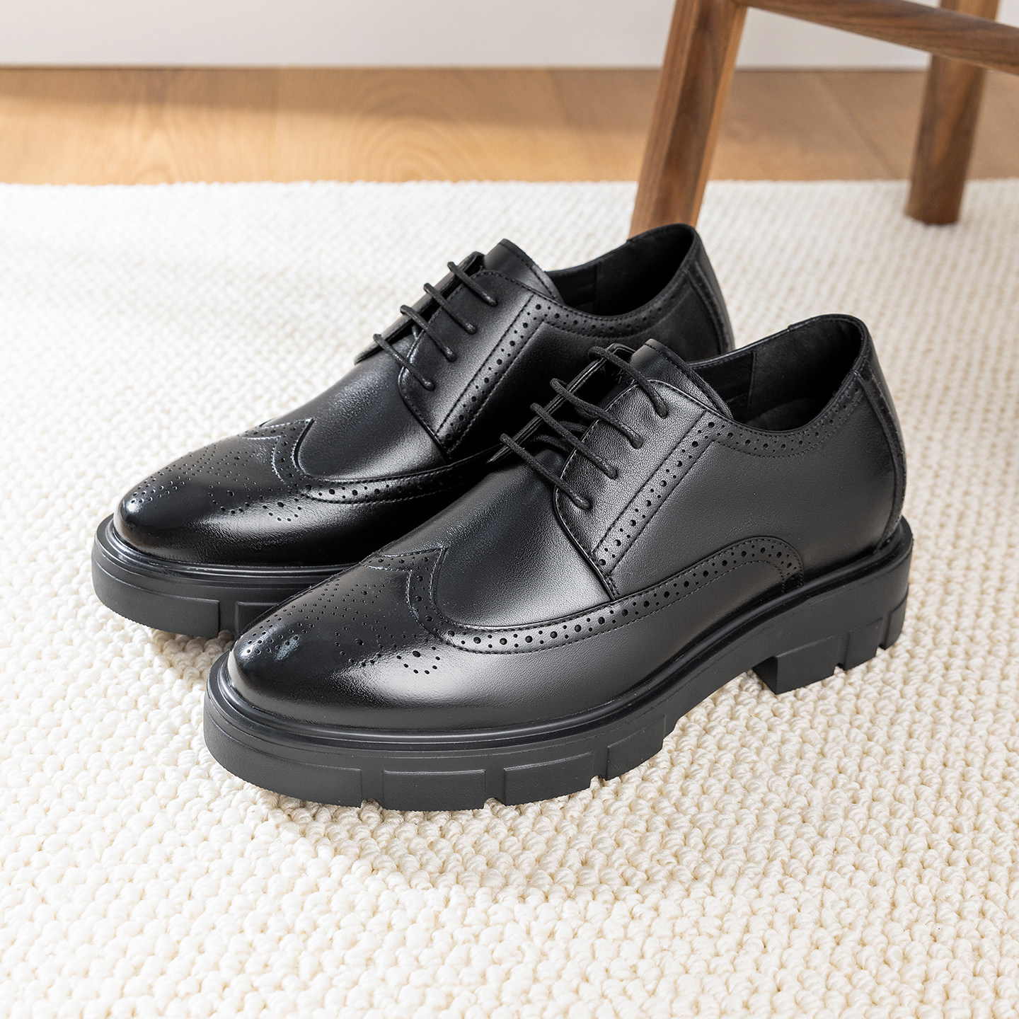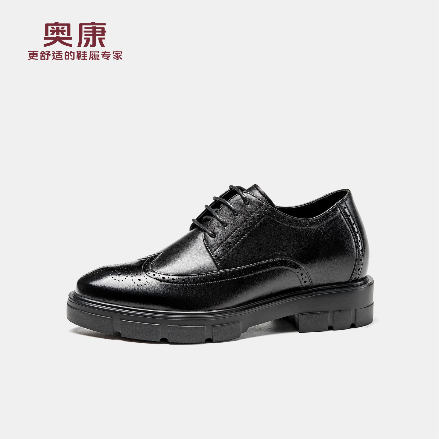 奥康 男鞋2026春季新款正装皮鞋布洛克英伦风厚底增高商务通勤鞋