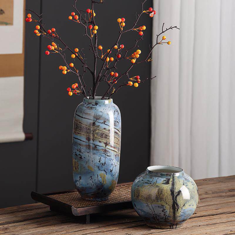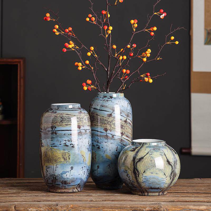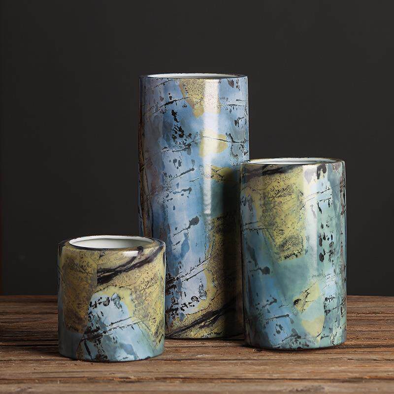 仿大理石纹现代花瓶摆件软装饰品轻奢感样板房客厅餐桌插花