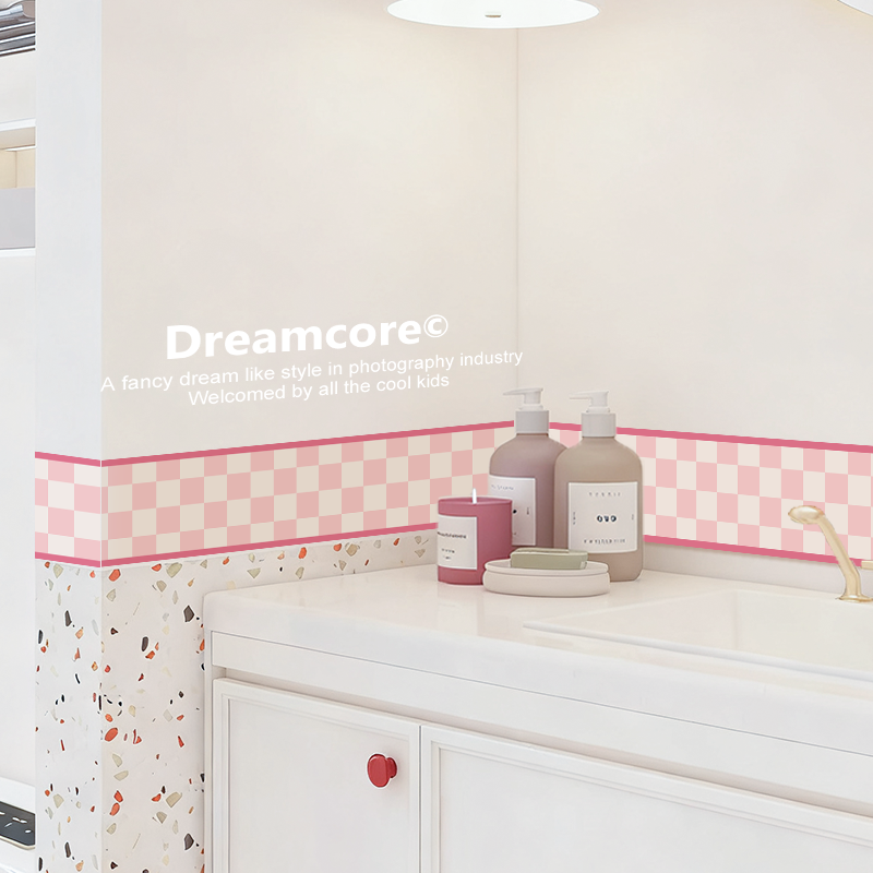 彩色格子瓷砖腰线装饰条遮丑墙纸自粘防水防潮创意美化踢脚线贴纸
