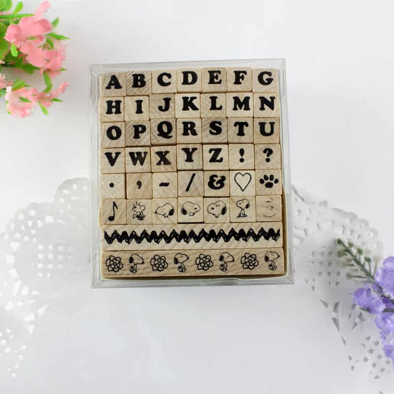 日本KODOMO NO KAO童颜史努比木头印章文字字母套装手帐DIY