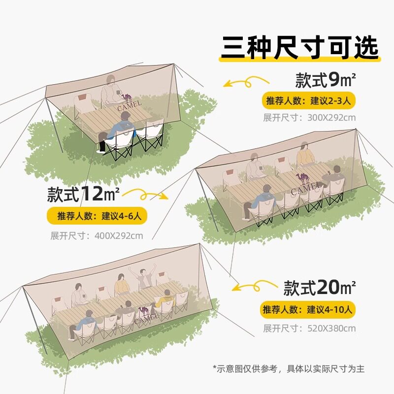 骆驼天幕户外大号黑胶露营帐篷野营野餐遮阳棚防雨防晒全套装备