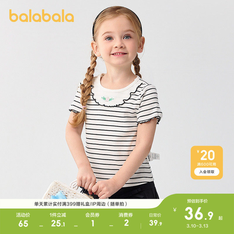 巴拉巴拉童装宝宝短袖女童T恤儿童上衣轻薄新款夏装正肩内搭绣花