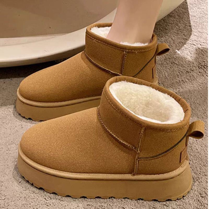 加绒雪地靴女厚底2025年冬季新款皮毛一体短筒靴加厚棉鞋鞋子毛绒