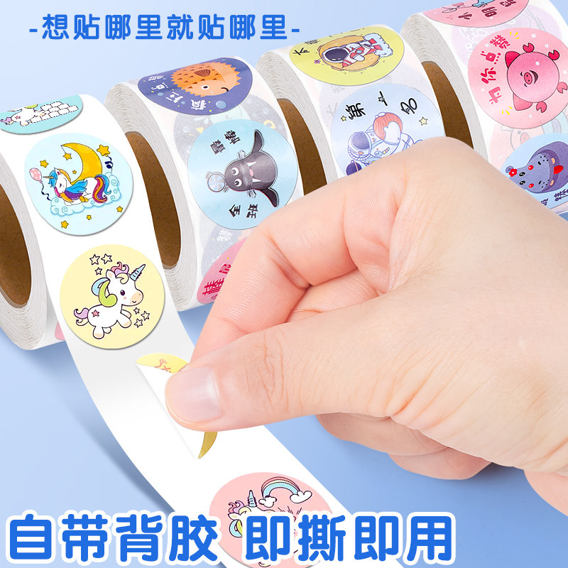 卡通可爱卷卷贴儿童奖励贴纸幼儿园小朋友小红花大拇指脸贴奖励贴小学生表扬贴教师用奖励孩子的小贴画贴贴纸