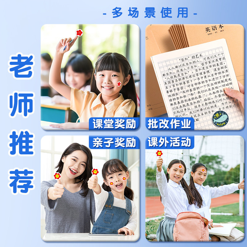 儿童鼓励小学生表扬奖励笑脸贴纸幼儿园大拇指笑脸小红花防水粘贴