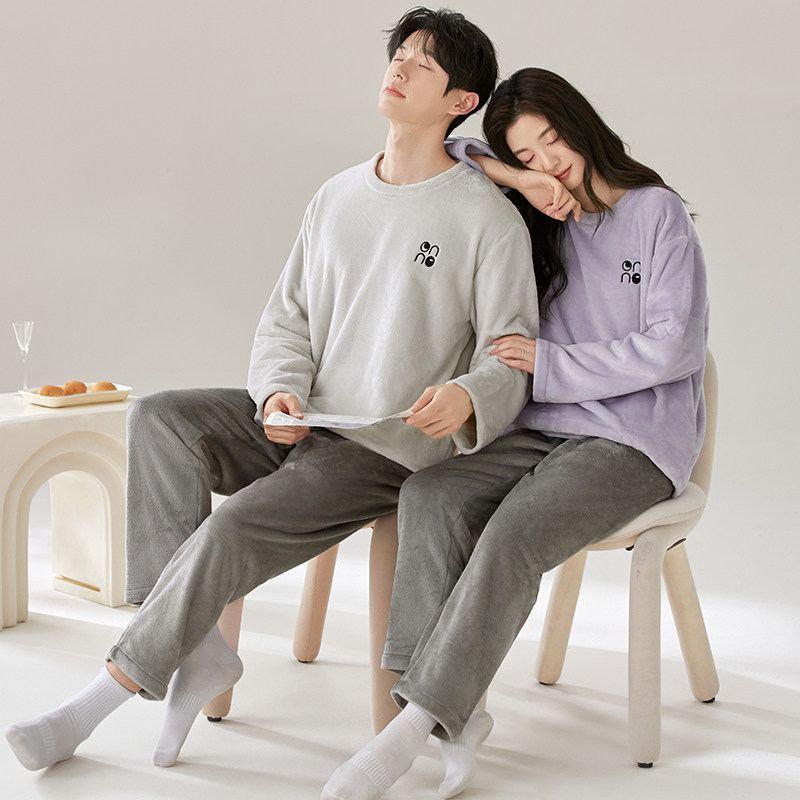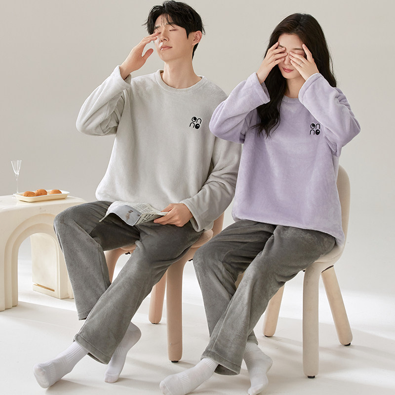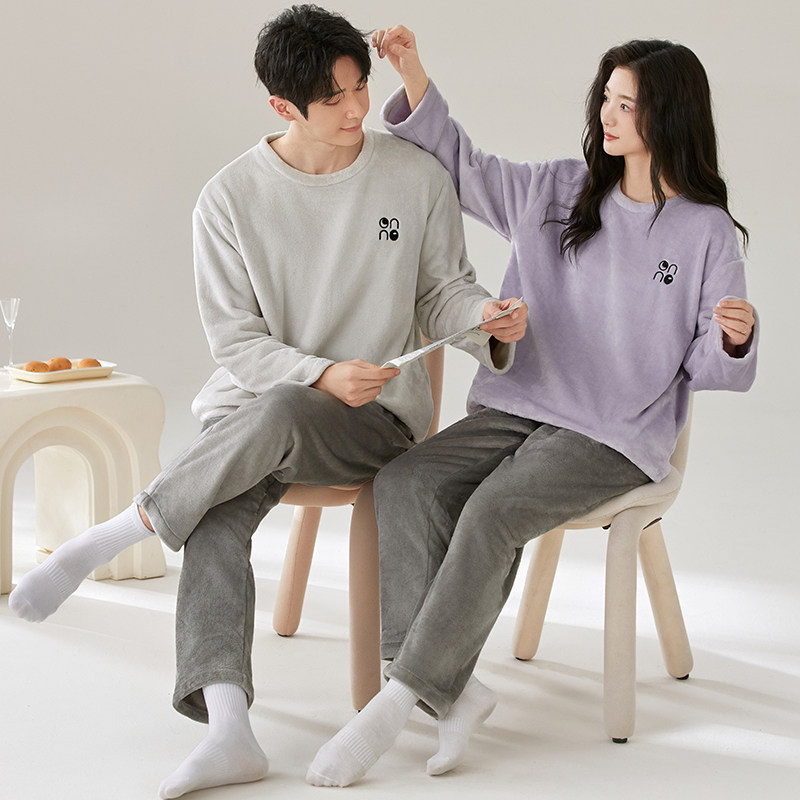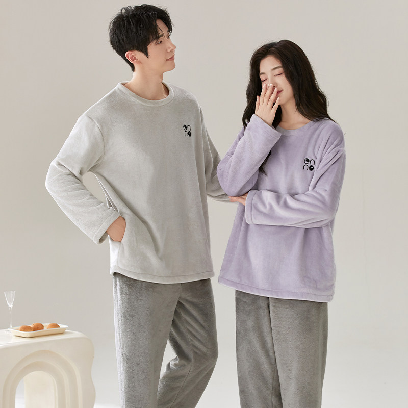 情侣睡衣冬季2025新款冬天款珊瑚绒加绒加厚一男一女家居服可外穿