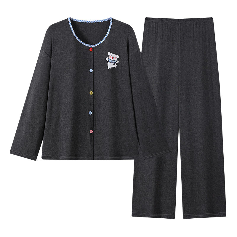 【清仓价】春长袖睡衣女双面舒棉绒开衫家居服套装大码长裤可外穿