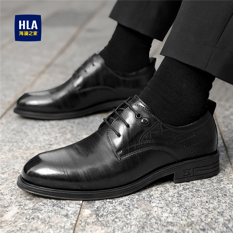 HLA/海澜之家男鞋新款春季商务皮鞋男系带尖头德比鞋