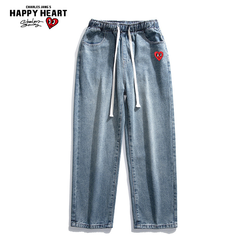 查尔斯桃心 牛仔裤男春秋季2025新款宽松直筒阔腿潮牌休闲长裤子