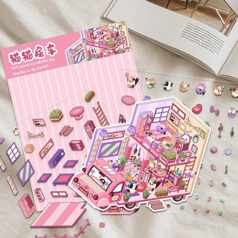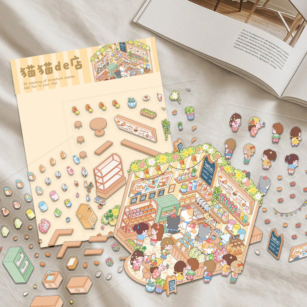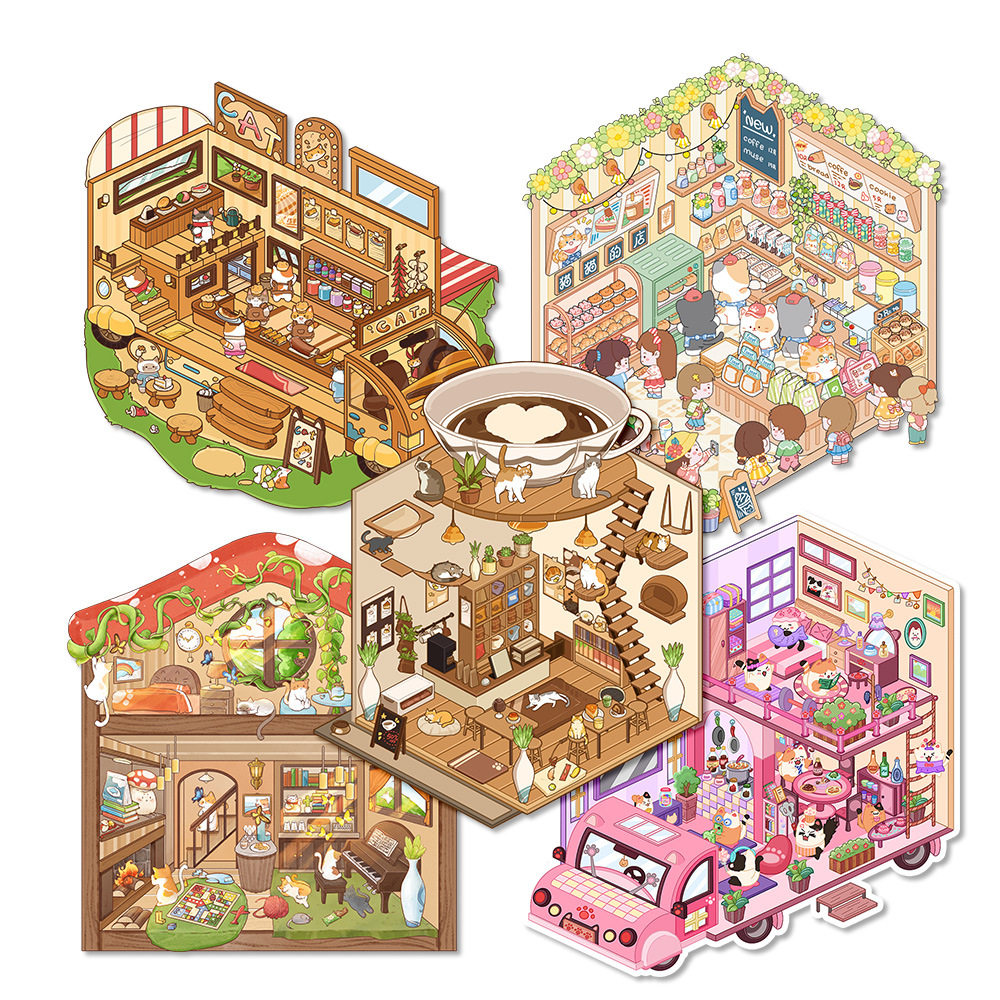 猫咪系列3D立体造景贴纸创意场景微缩世界手帐日记剪贴簿拼贴小屋童话