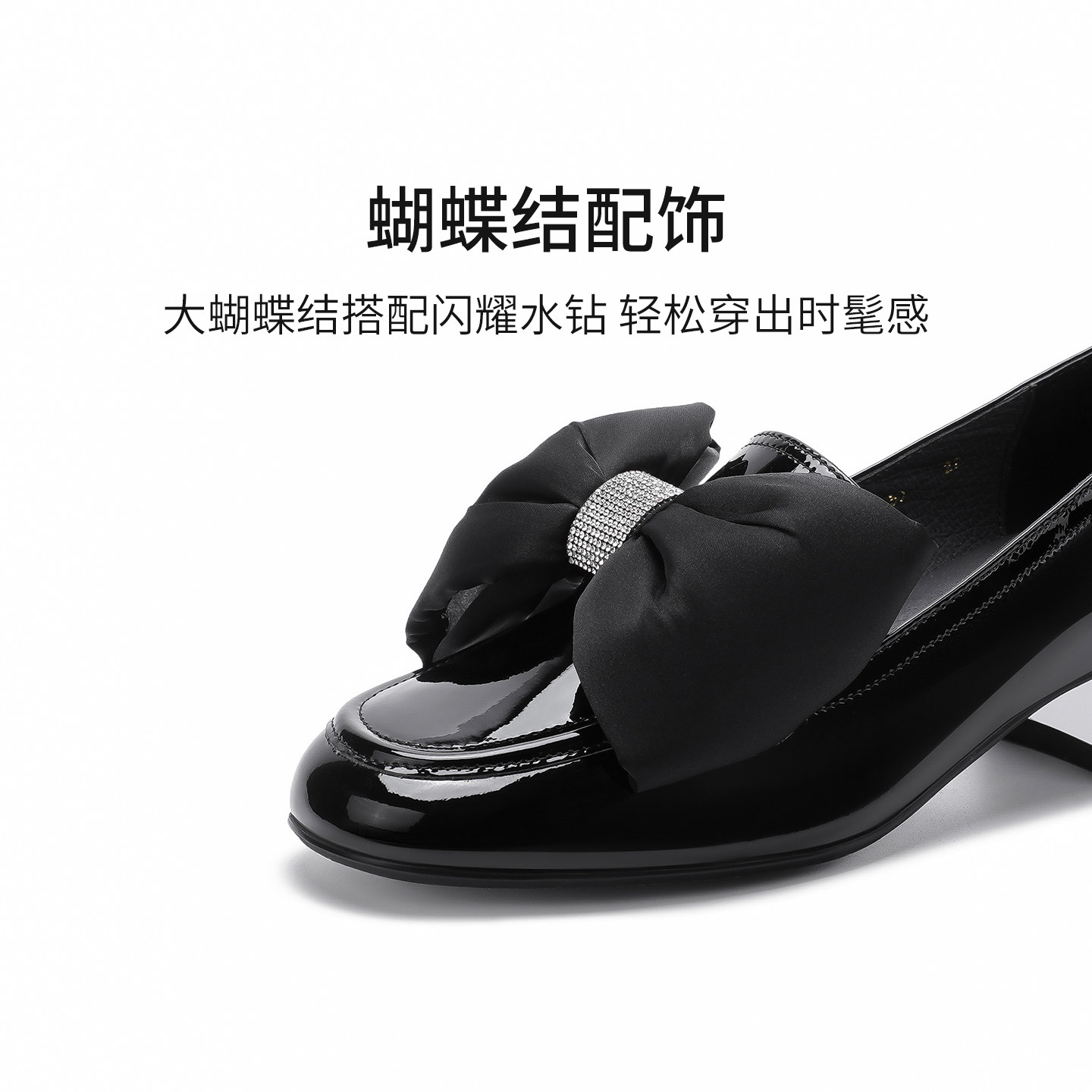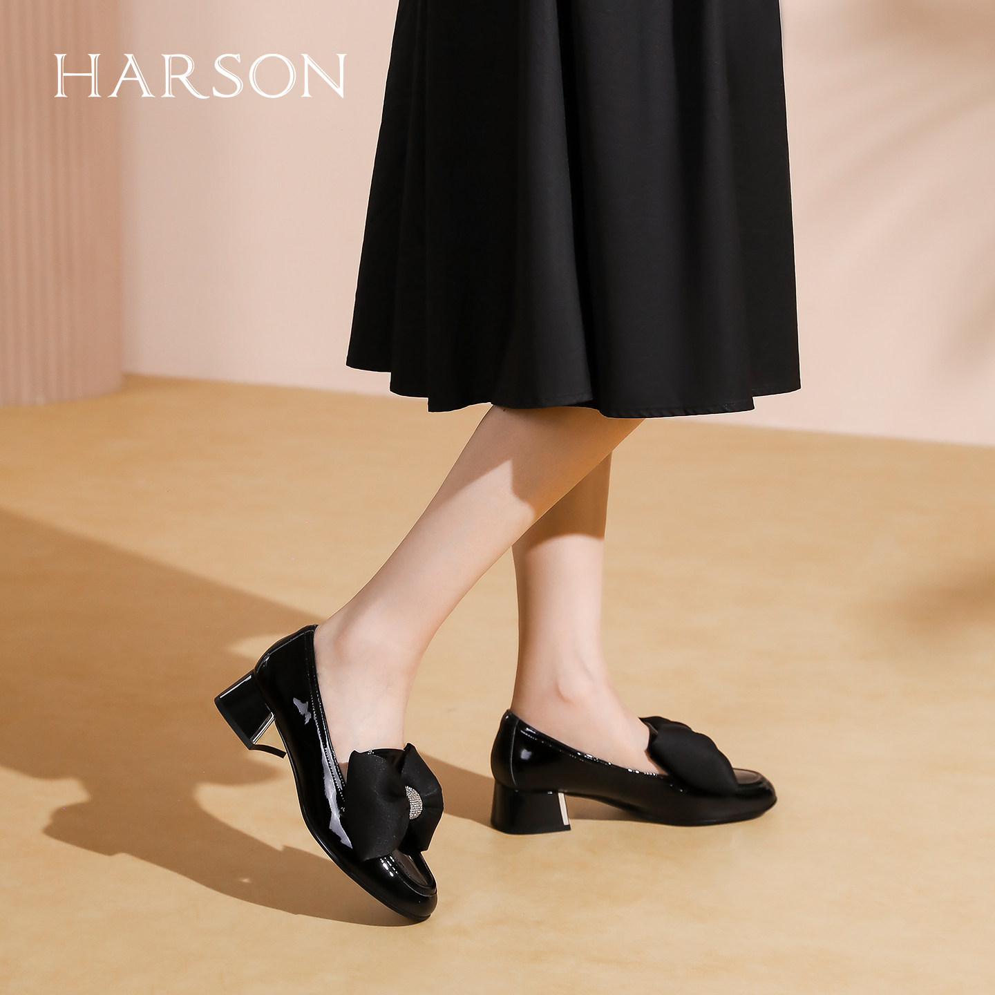 哈森秋季新款商场同款休闲方跟圆头乐福鞋蝴蝶结单鞋HL226011