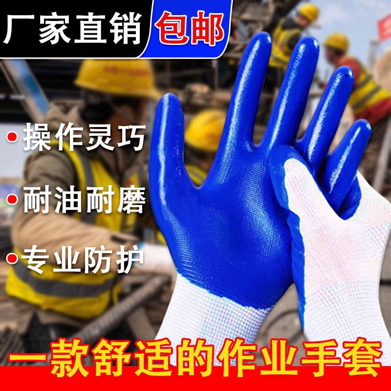 手套劳保防护丁腈耐磨胶皮防滑橡胶男女工地干活耐油园艺防油防水