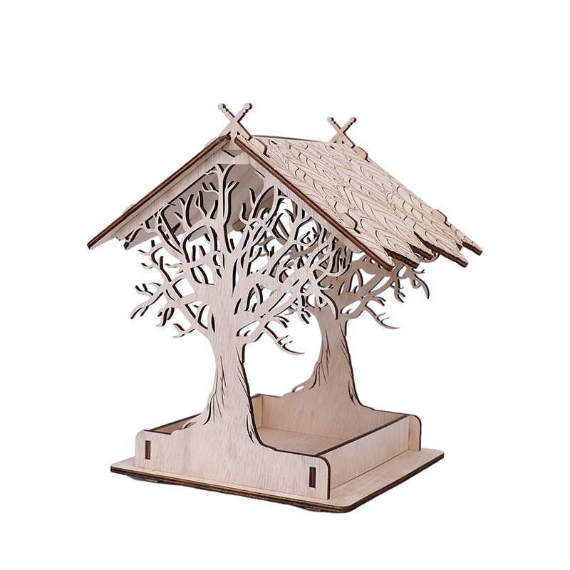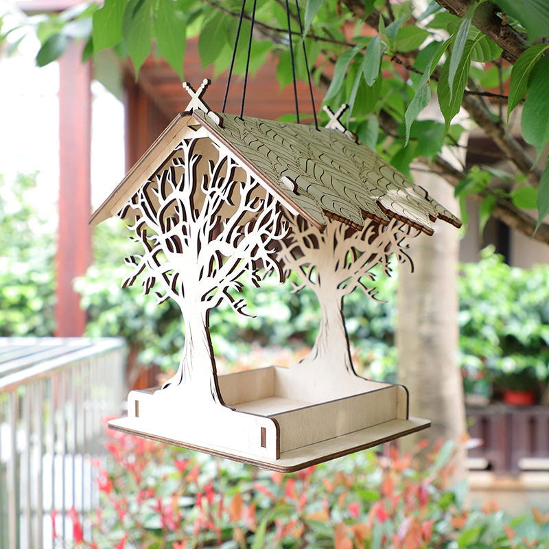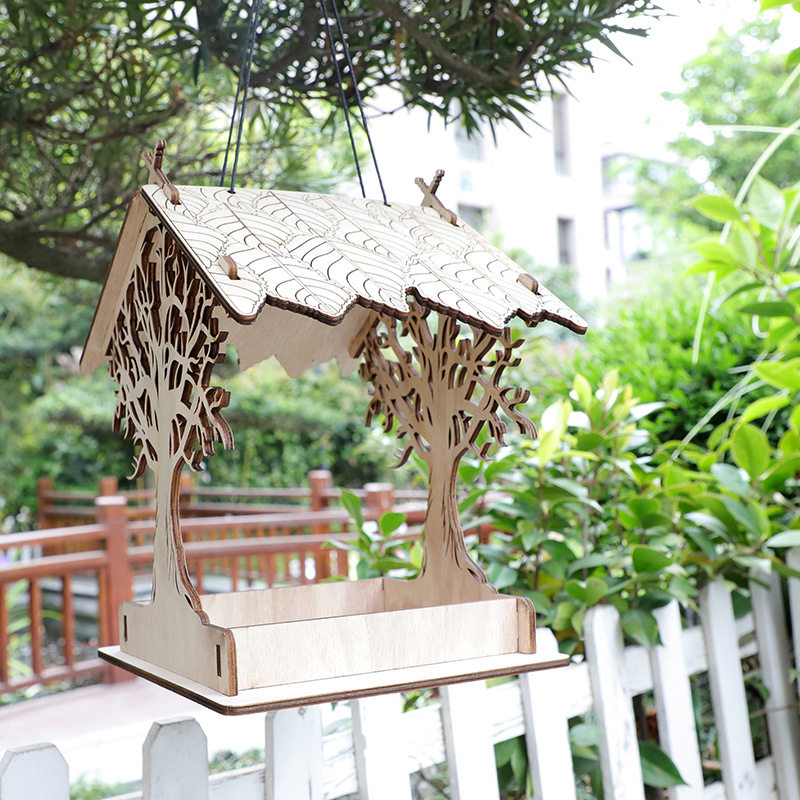 现货爆款户外木质鸟笼 防鼠悬挂式喂鸟器 庭院园林鸟类喂食器