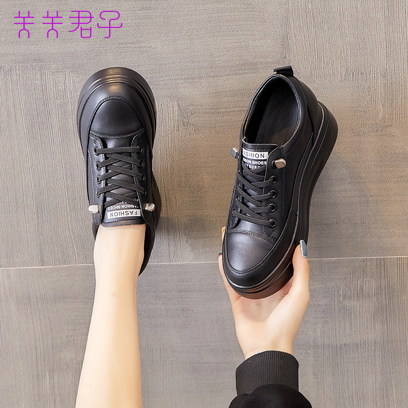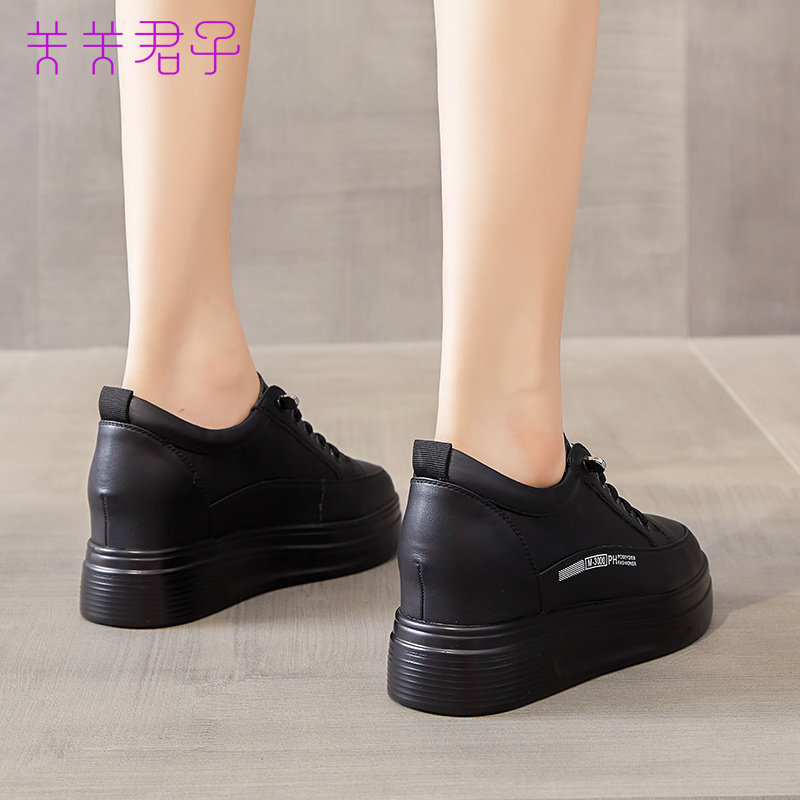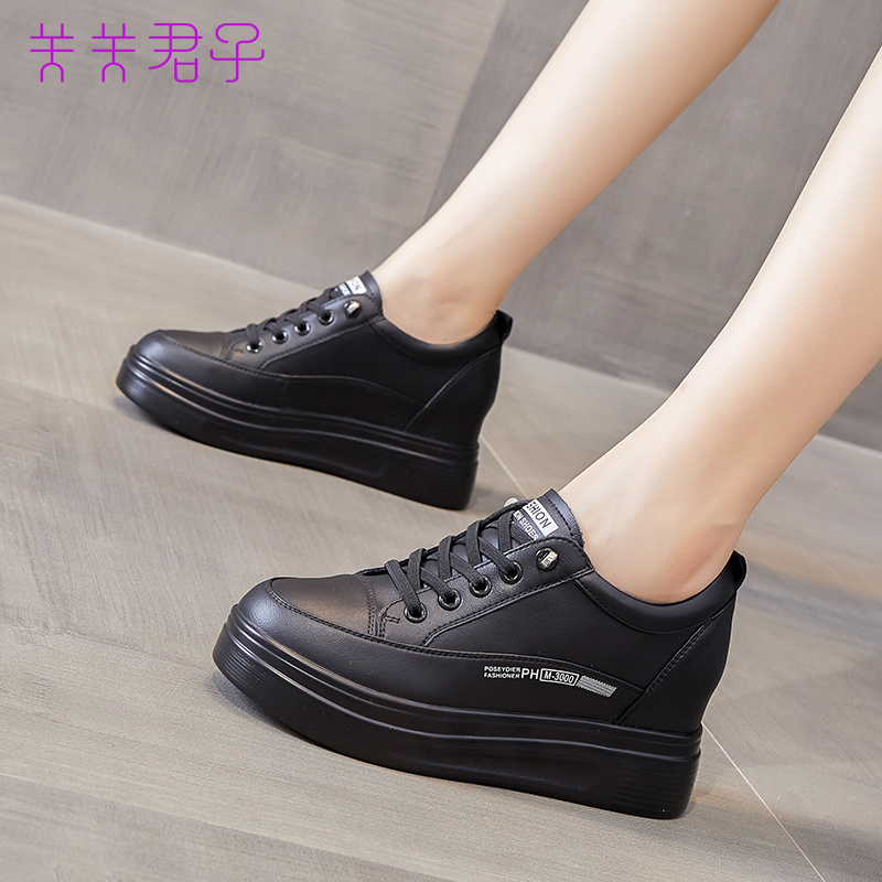 【明星同款】Wander around春秋款黑色厚底增高休闲板鞋男女同款