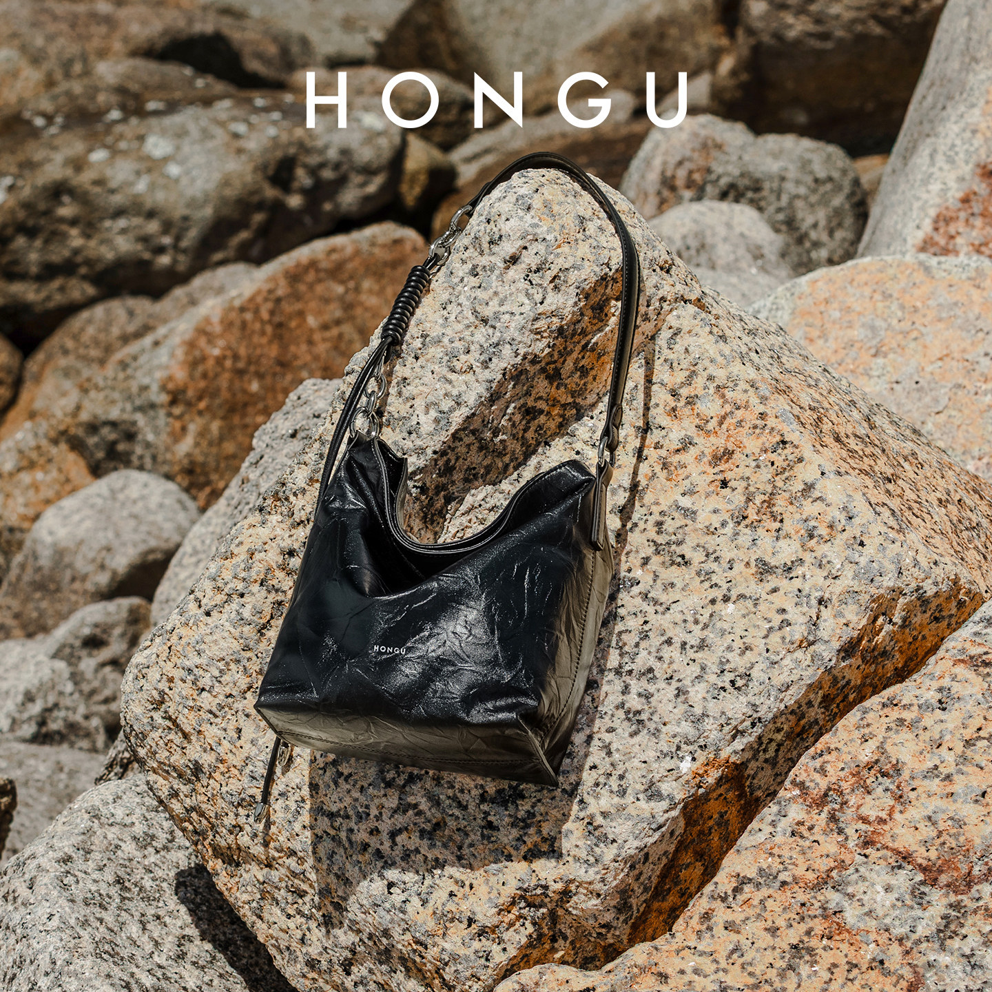 红谷包包2025新款高级感牛皮单肩手提包通勤大气斜挎手拎包女士包