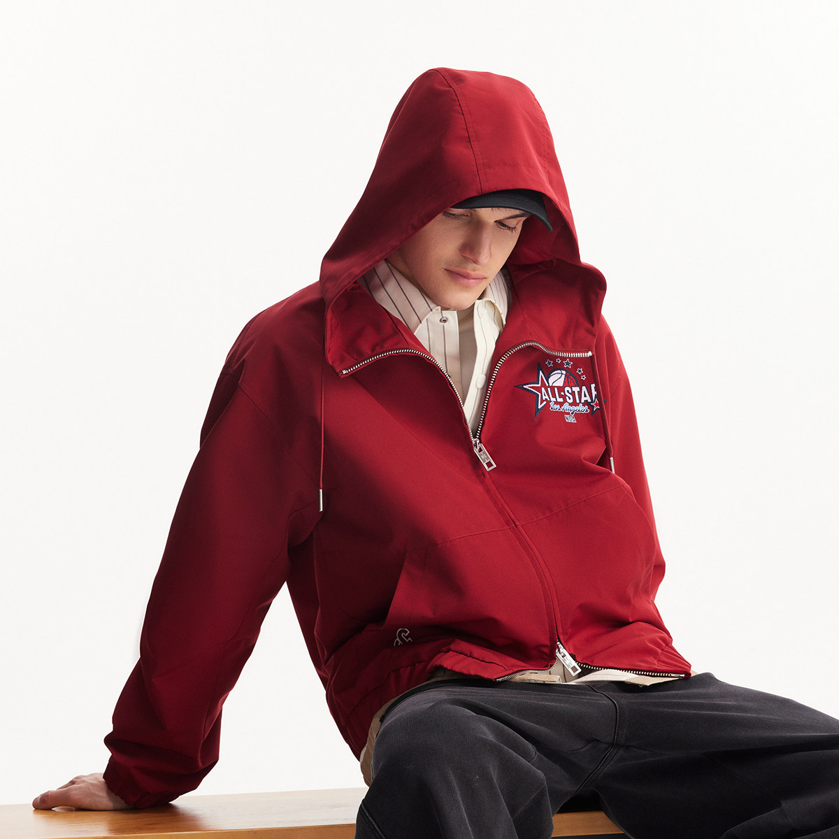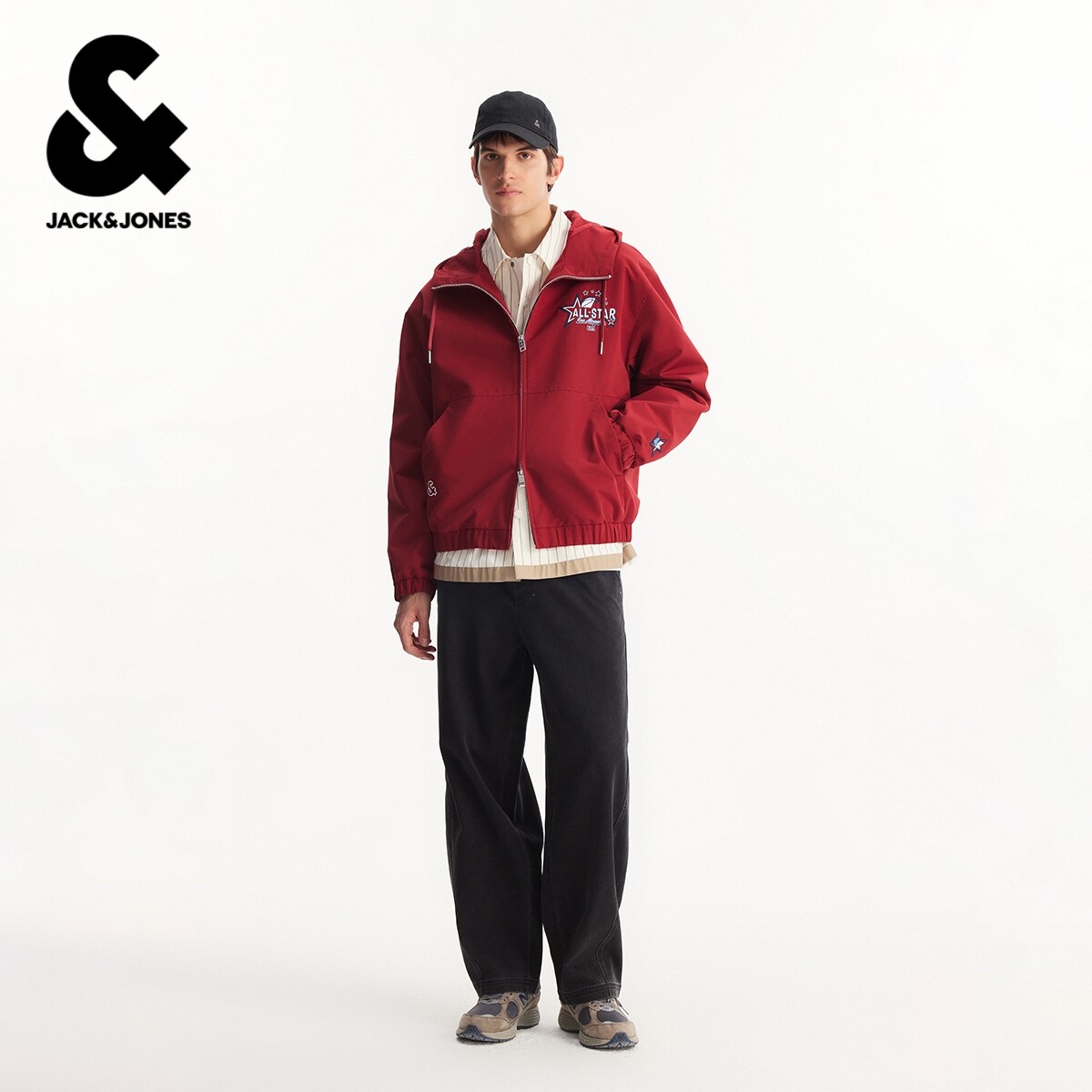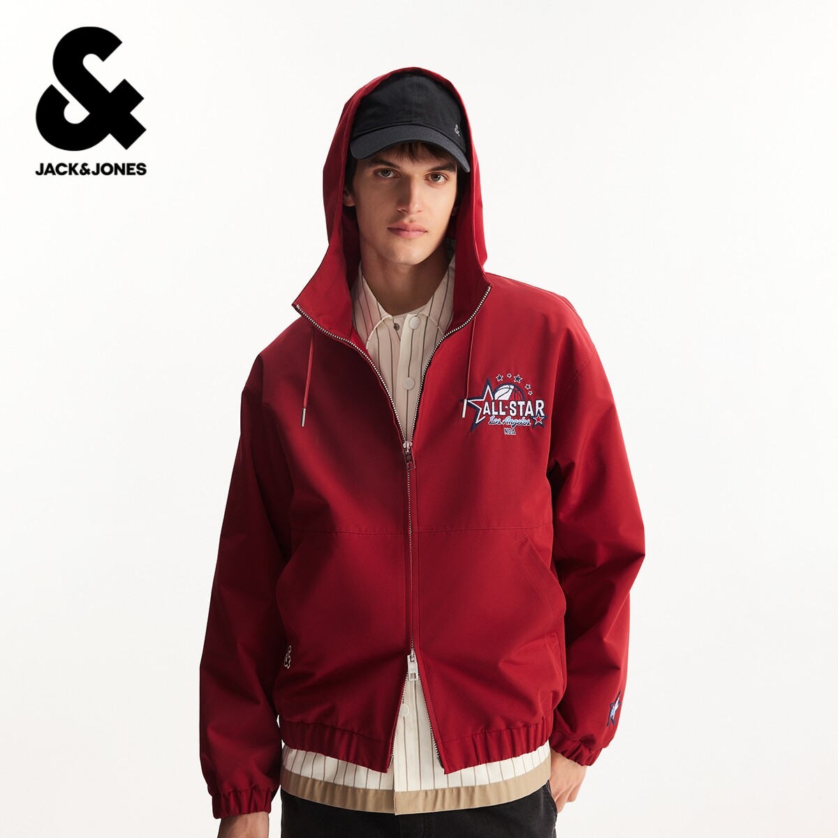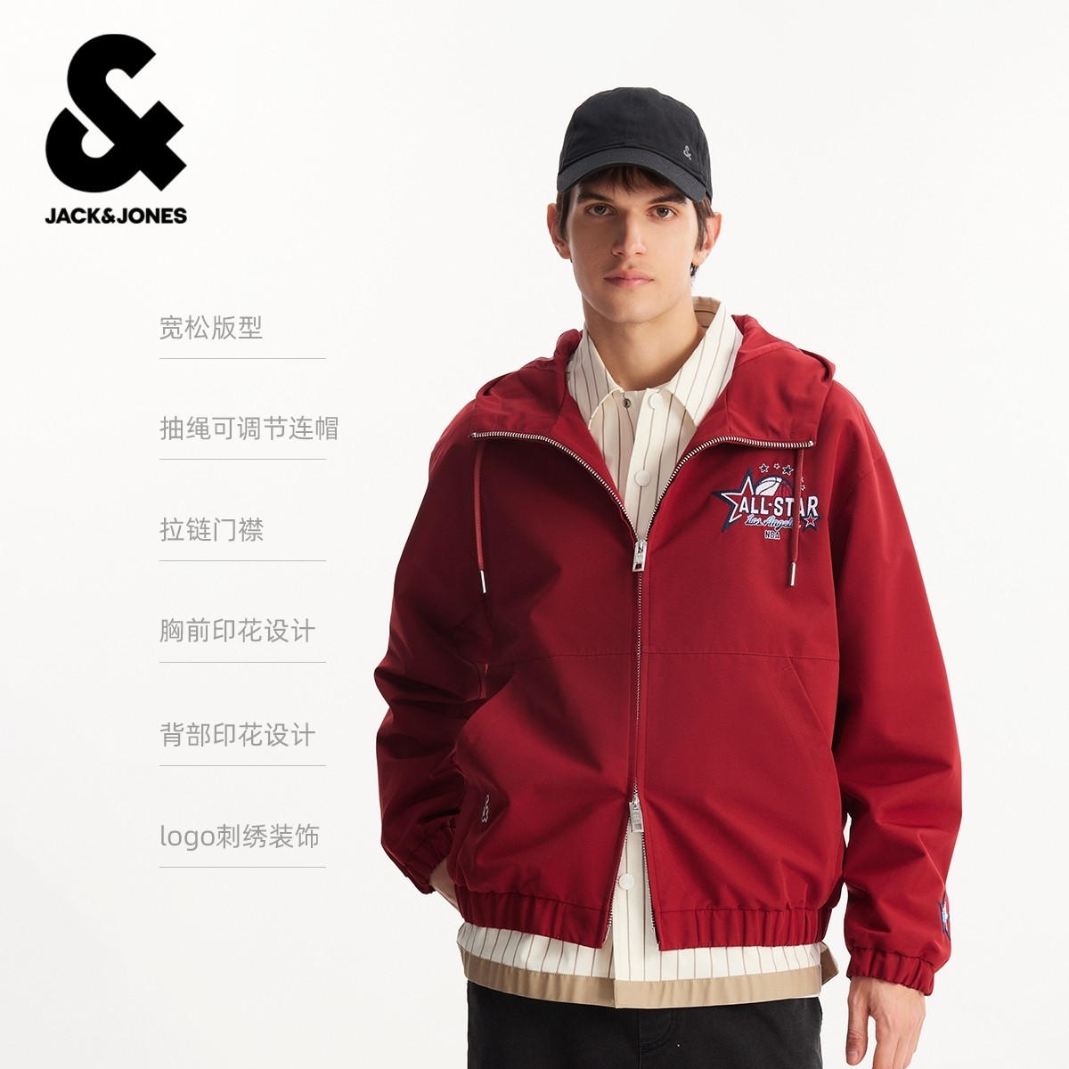 【NBA联名款】杰克琼斯男装春季夹克外套刺绣印花抽绳可调节连帽