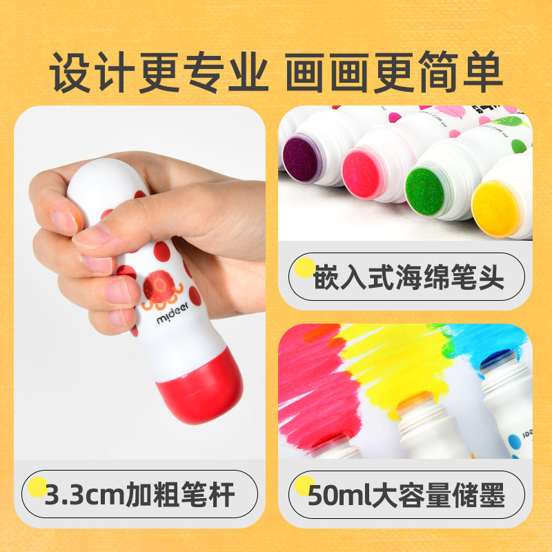 mideer弥鹿点点笔涂鸦套装宝宝水彩笔安全可水洗幼儿园2岁早教绘画专用儿童彩色笔画画涂色笔可擦水溶性彩笔
