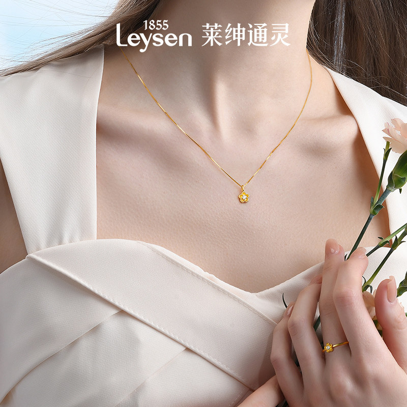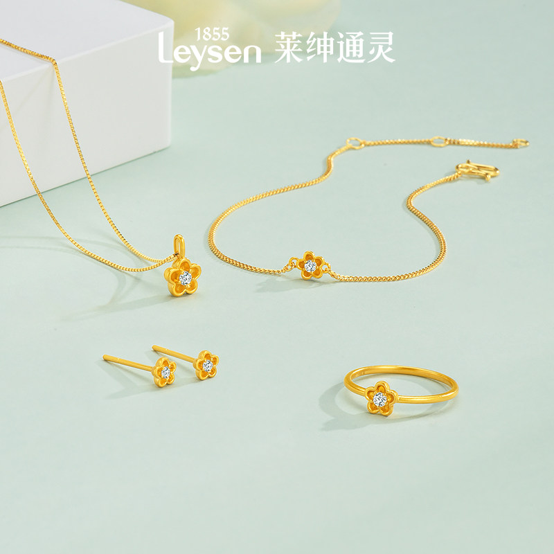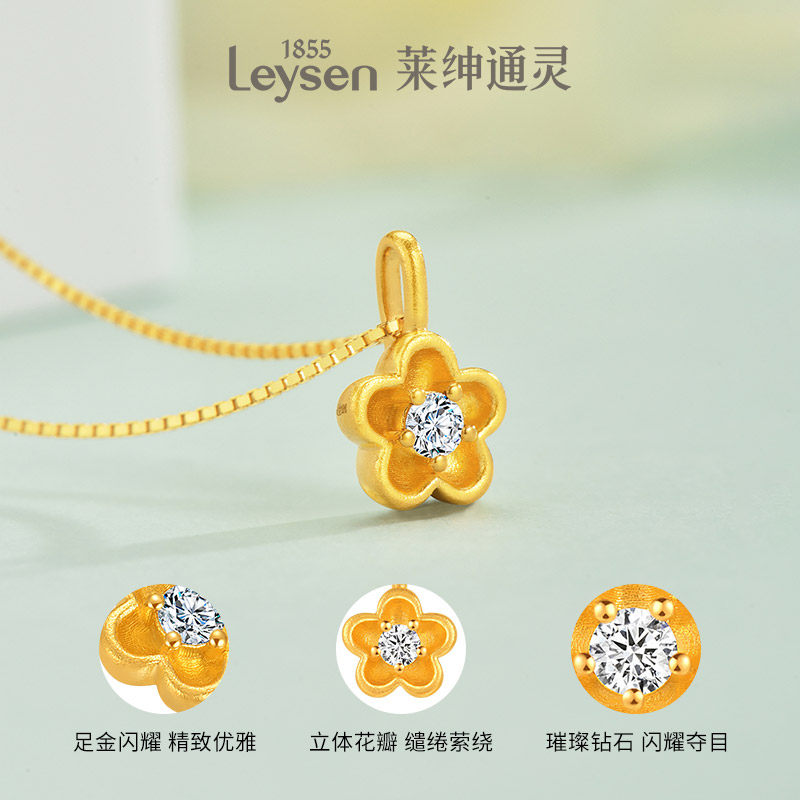 莱绅通灵 蜜糖系列花朵 足金999古法黄金钻石吊坠挂坠 赠银链项链