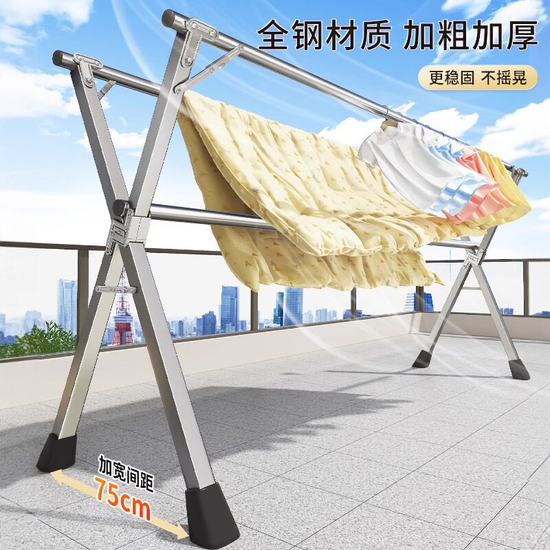落地晾衣架折叠不锈钢家用阳台室内室外伸缩凉衣杆室内晒被子神器